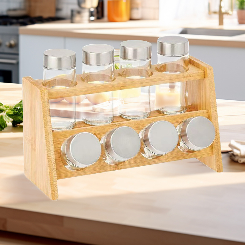 가정용 주방 조정 가능한 병 보관 랙 데스크탑 더블 레이어 커피 캡슐 보관 랙 나무 주방 보관 랙