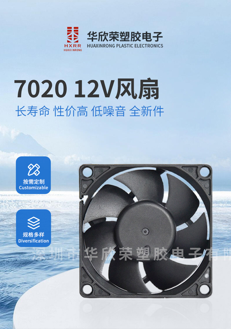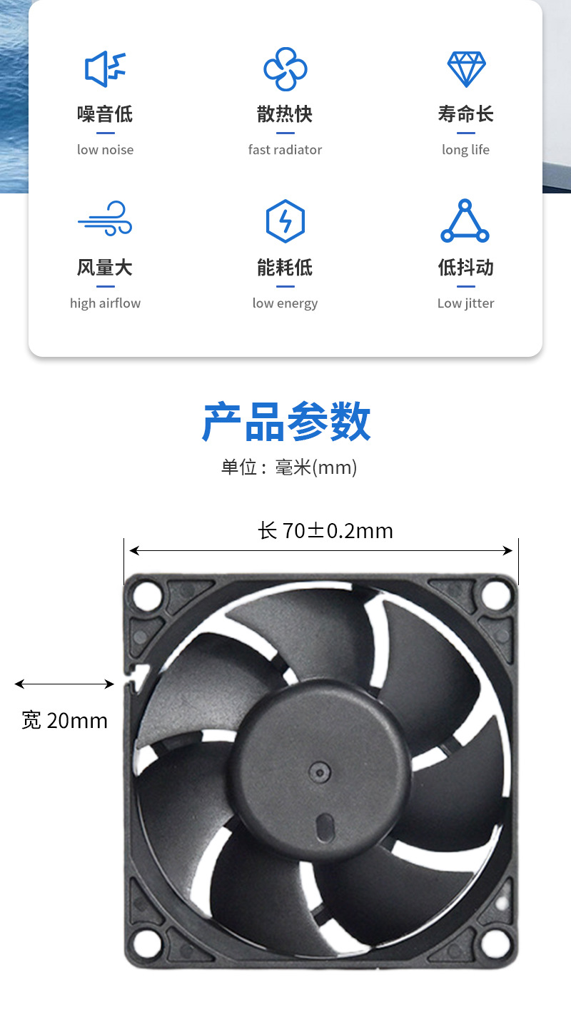 7020 12V 팬 DC 컴퓨터 전원 공급 장치 CPU 섀시 호스트 음소거 큰 공기량 블랙 냉각 팬