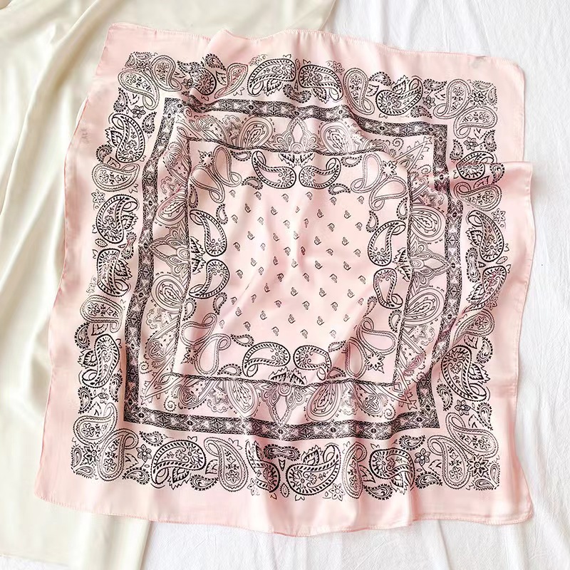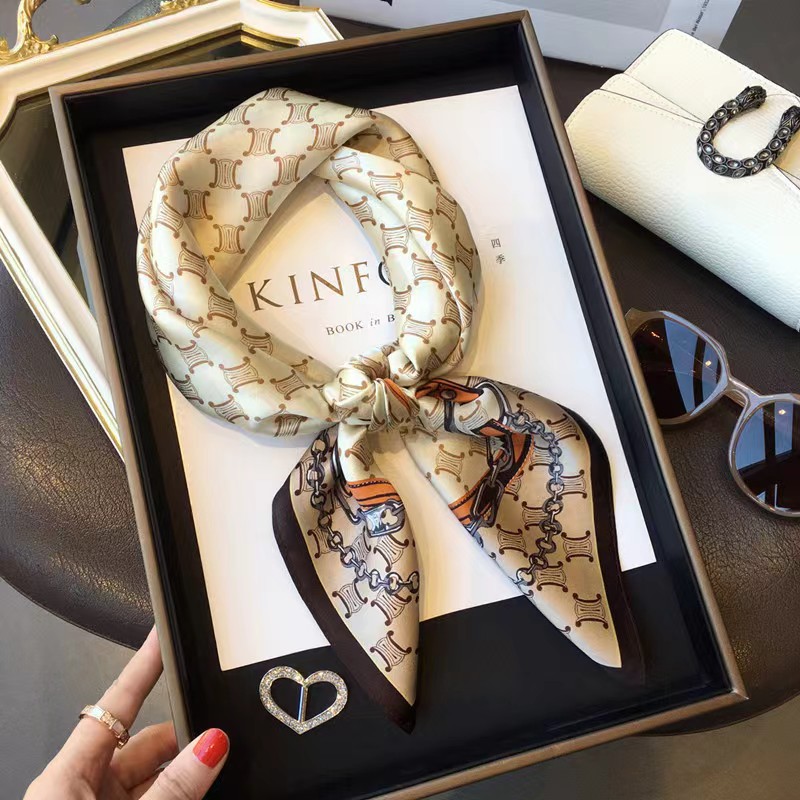 한국 스타일의 새로운 작은 사각형 스카프 여성용 실크 스카프 70cm 문자 인쇄 스카프 사각형 목도리 헤어 스카프 머리 스카프 헤어 액세서리 도매