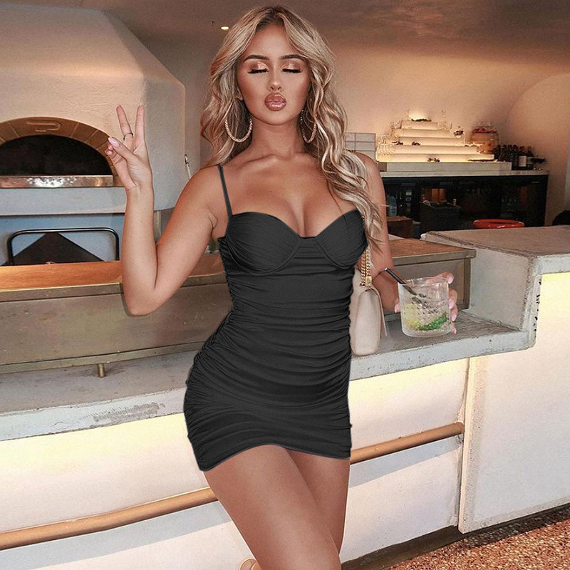 유럽과 미국 2024 봄과 여름 새로운 여성의 섹시한 랩 가슴 원피스 높은 허리 등받이 주름진 엉덩이 가방 원피스스토어 가기