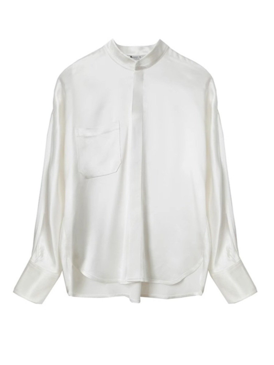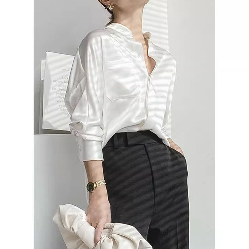 디자인 감각 틈새 아세테이트 새틴 셔츠 여성의 가을 새로운 간단한 고급 기질 흰색 실크 셔츠스토어 가기
