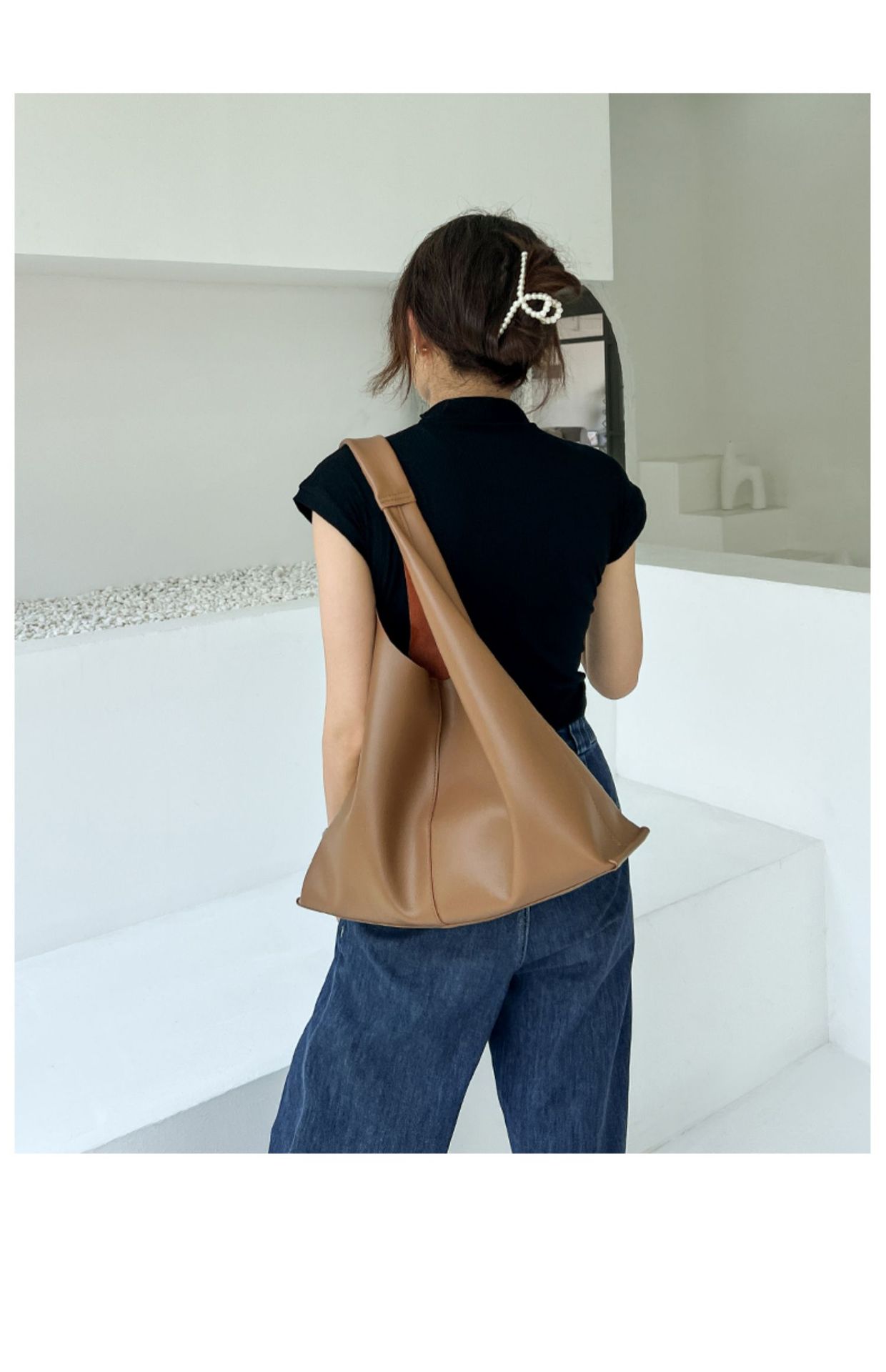 간단한 어깨 가방 대용량 소 가죽 여성 가방 2025 새로운 틈새 부드러운 가죽 겨드랑이 토트 백 여성 정품 가죽 대형 가방스토어 가기