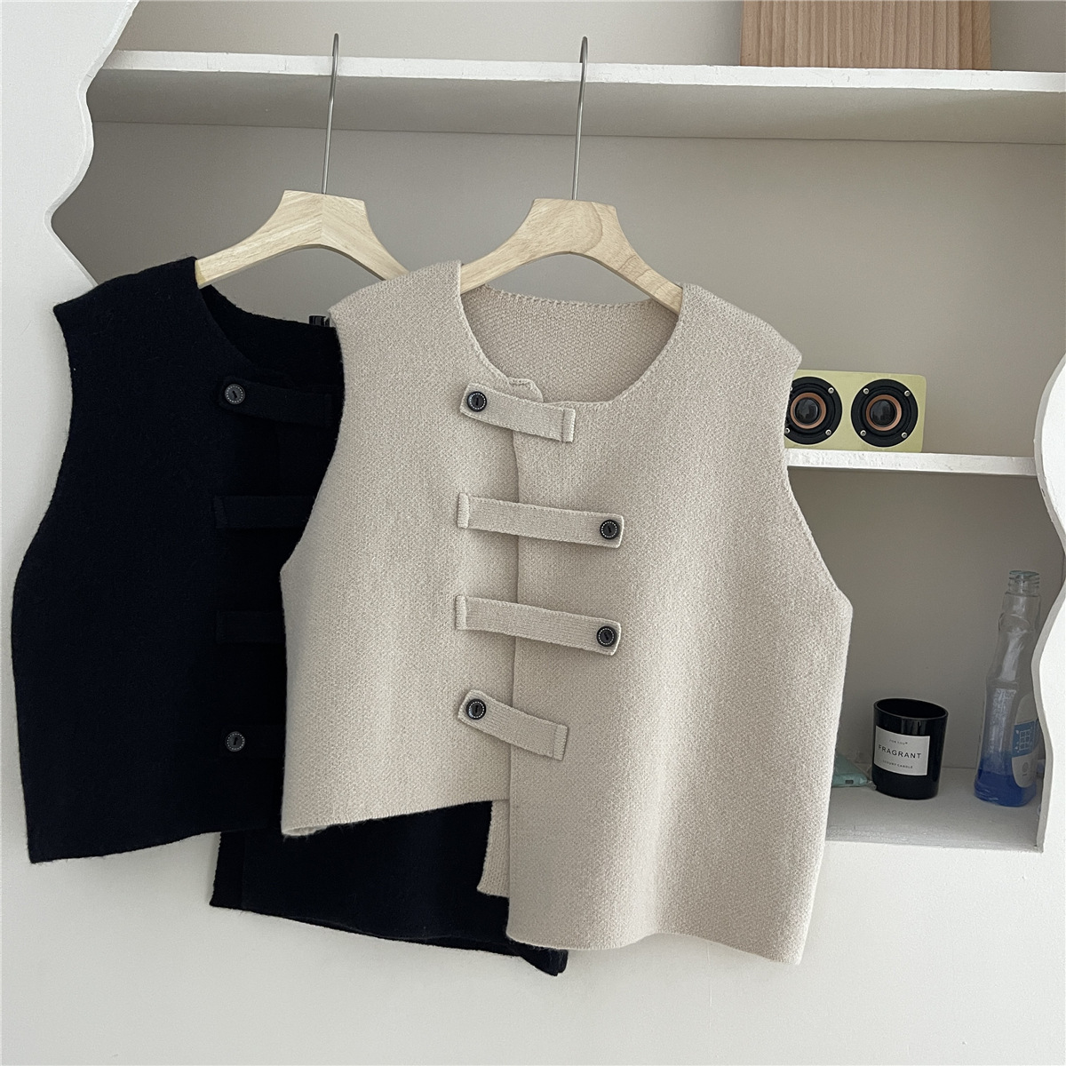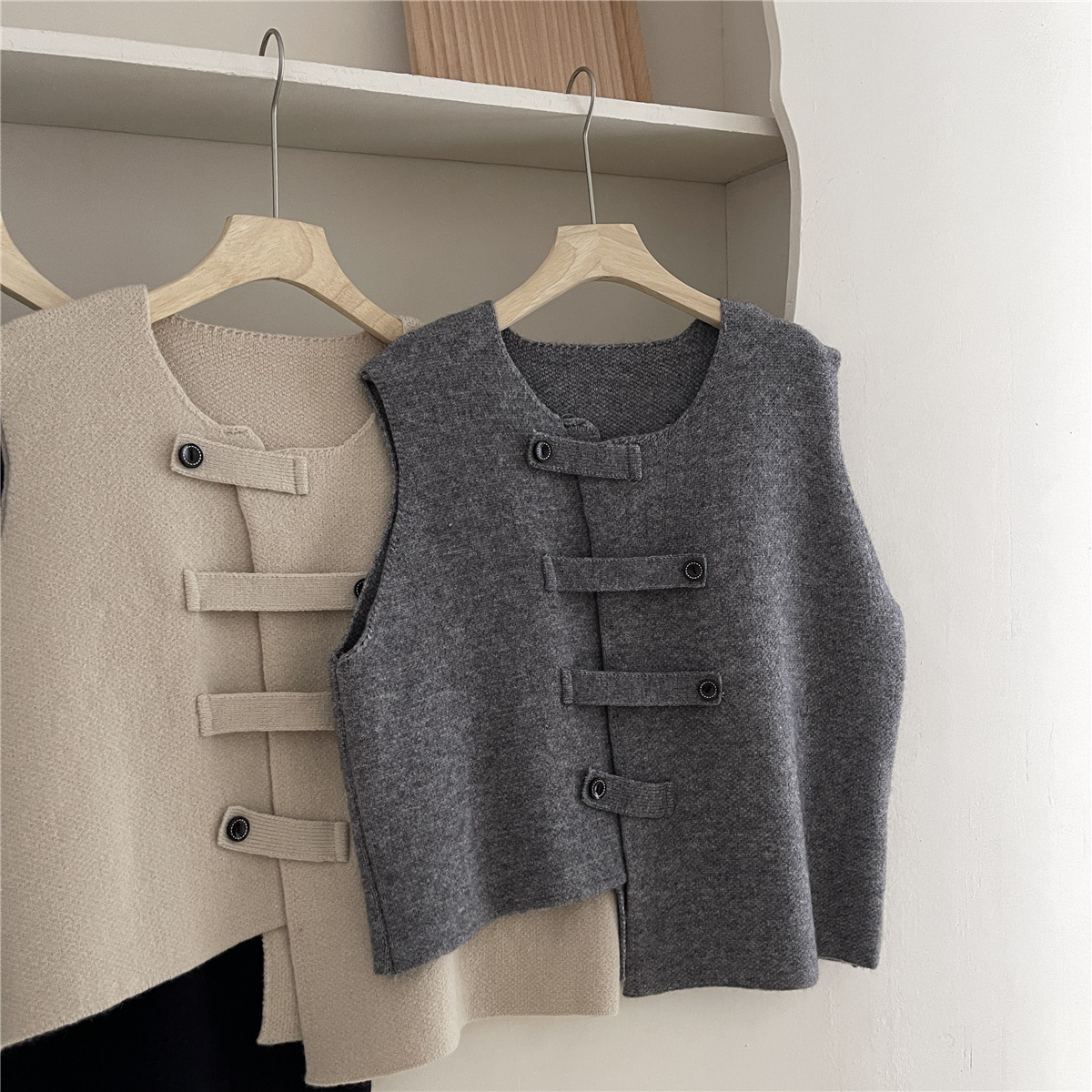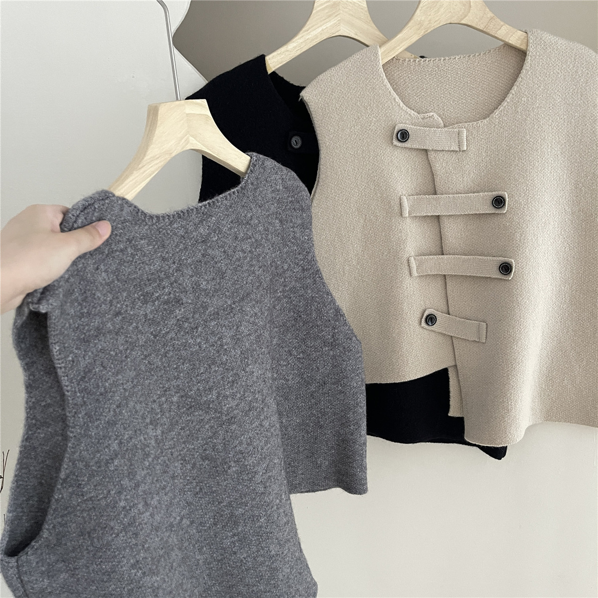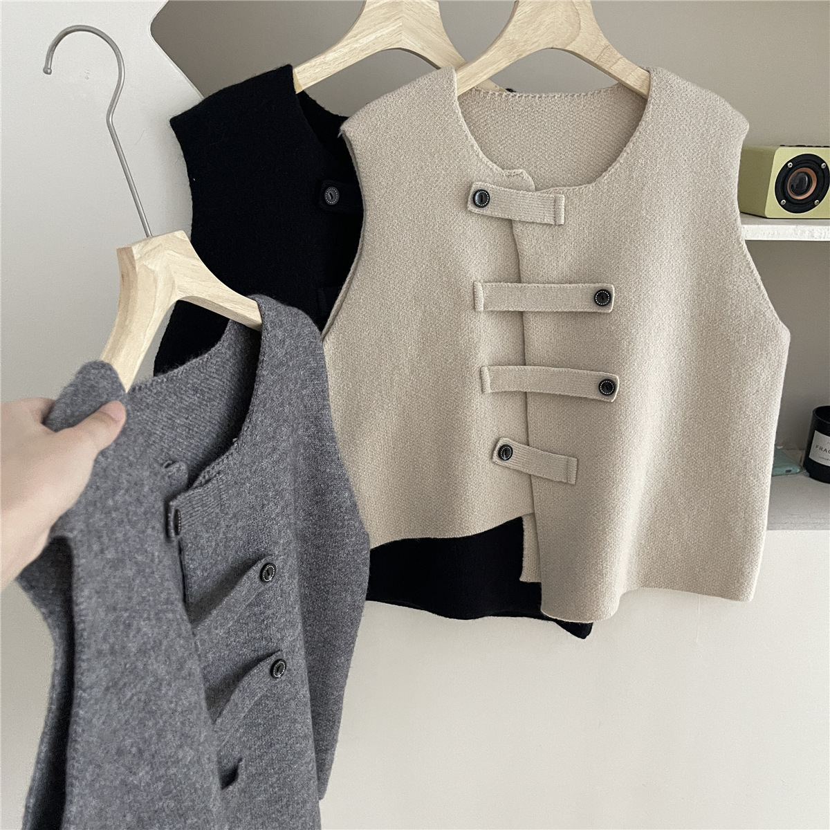봄과 가을 한국 스타일 틈새 예술적 복고풍 니트 조끼 느슨한 스택 단색 버튼 디자인 센스 니트 조끼스토어 가기