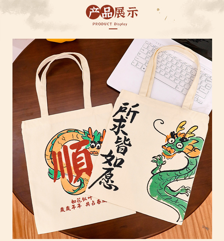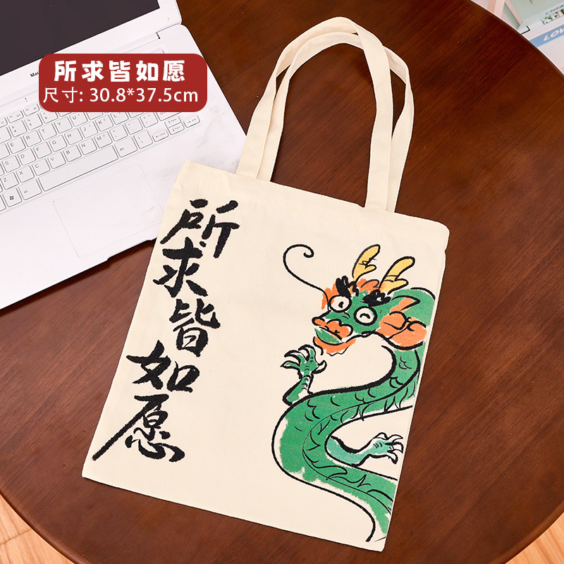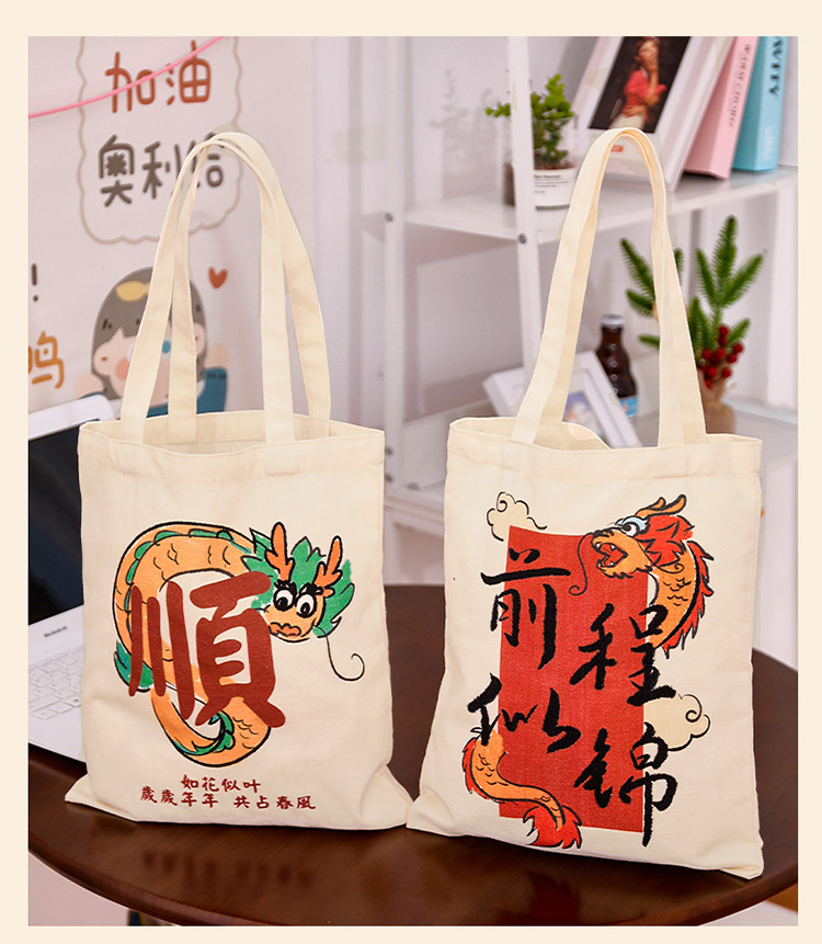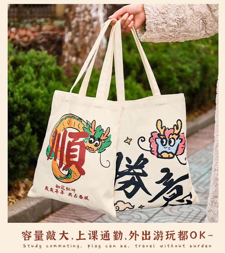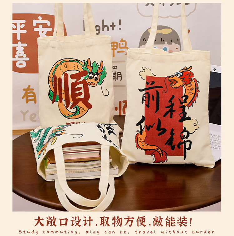 만화 텍스트 캔버스 가방 중국 스타일 용 년 핸드백 학생 통근 간단한 대용량 캔버스 숄더백스토어 가기