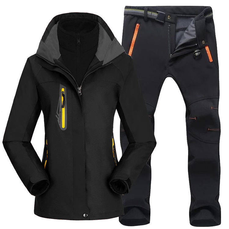 공장 도매 겨울 야외 재킷 남성과 여성의 세트 투피스 분리 가능한 등산 세트 방풍 워터 재킷
