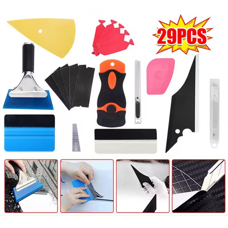 국경 29 피스 자동차 스크레이퍼 색상 변경 필름 태양 필름 보이지 않는 자동차 의류 긁는 울 스크레이퍼 도구 건설 세트스토어 가기