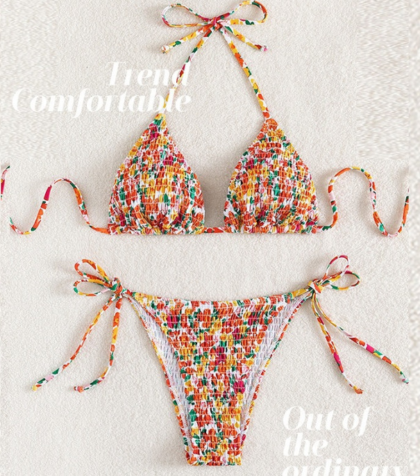 소스 공장 삼각형 가방 꽃 수영복 재고 섹시한 3 점 스트랩 비키니 크로스 보더 세트 비키니스토어 가기