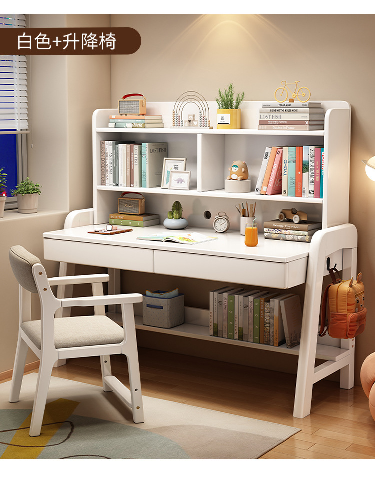 단단한 나무 어린이 공부 책상 책장 학생 집 책상 조절 침실 어린이 책상 및 의자스토어 가기