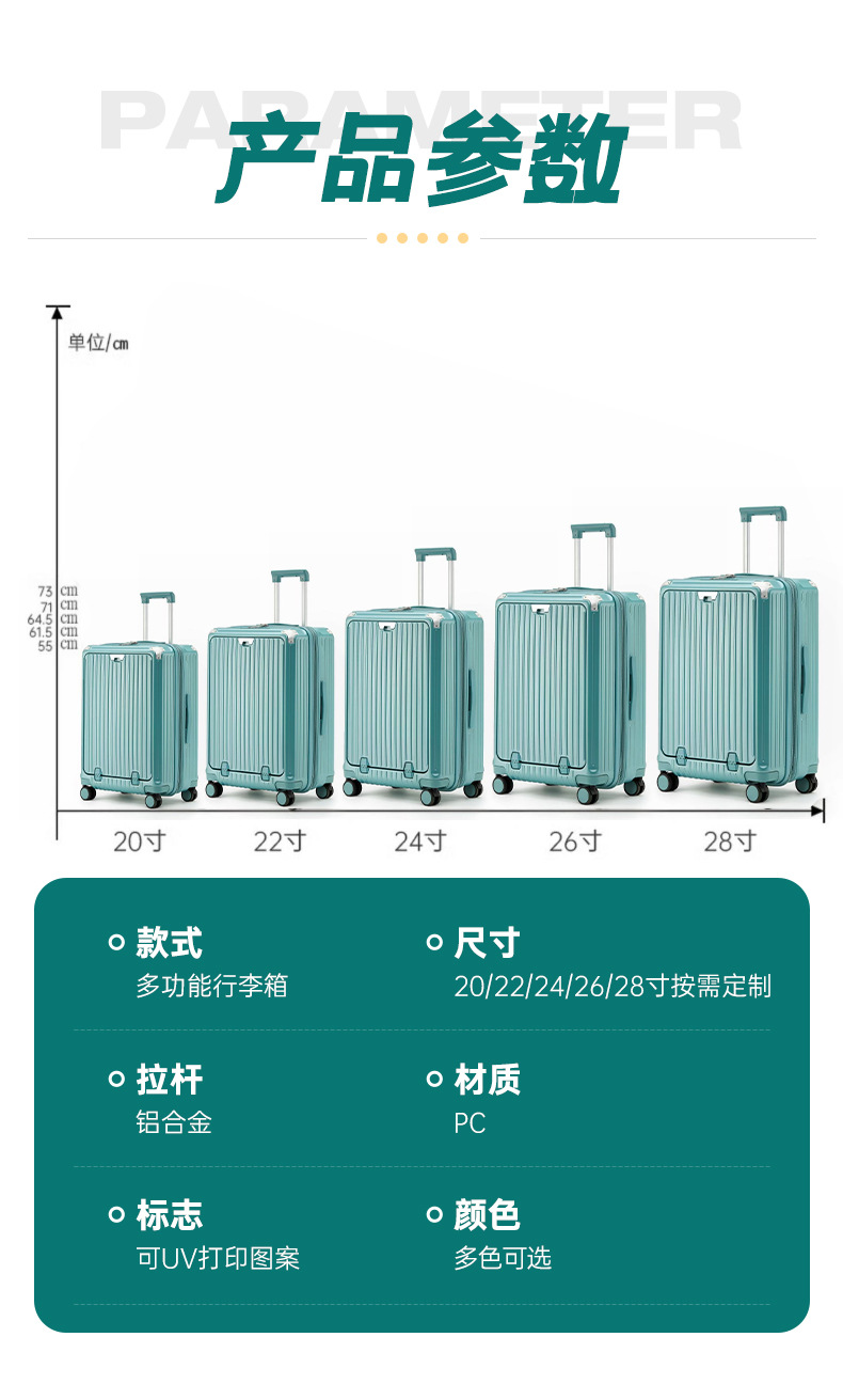20inch 탑승용 트롤리 가방, 충전식 전면 개방형 다기능 여행 가방, 고품질 여행 가방의 국경 간 공급스토어 가기