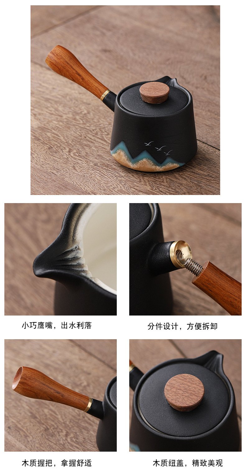 • Wanli Jiangshan 사이드 핸들 냄비 [블랙] 4 컵 선물 상자 냄비