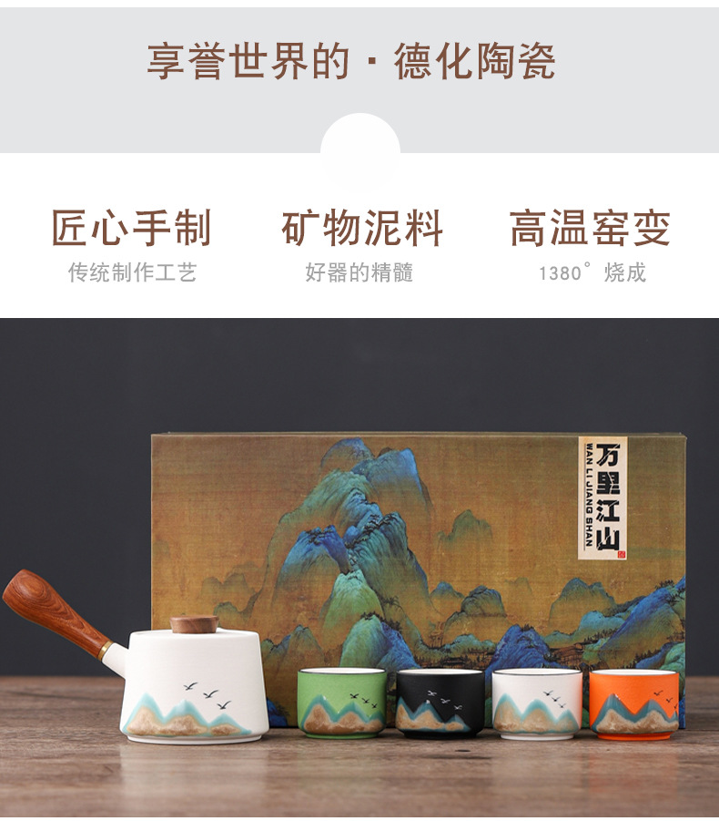 황궁 문화 및 창조적 인 국가 조수 빔 냄비 사이드 핸들 포트 티 세트 Wanli Jiangshan 1 냄비 4 컵 비즈니스 축하 회의 선물스토어 가기