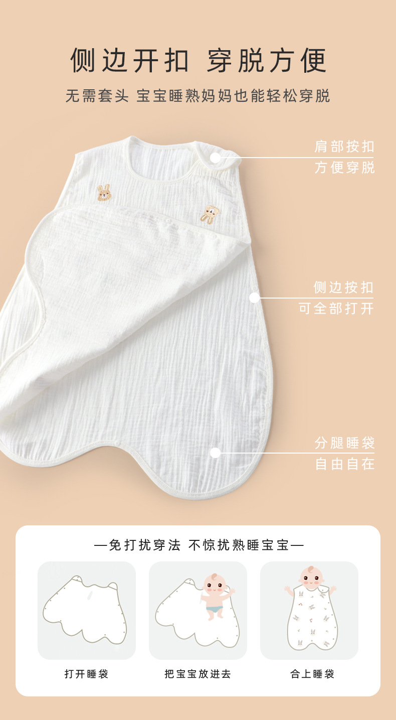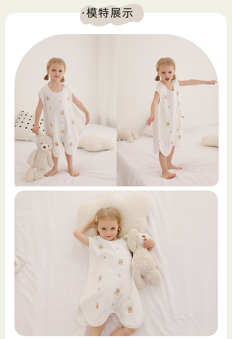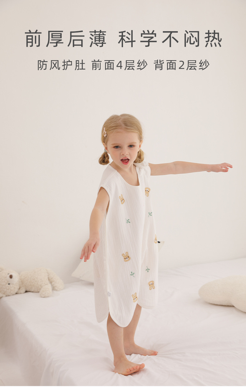 어린이 여름 슬리핑 백 거즈 나이트 가운 얇은 민소매 조끼 킥 방지 하위 아동 아티팩트 런치 브레이크 파자마 홈 의류스토어 가기