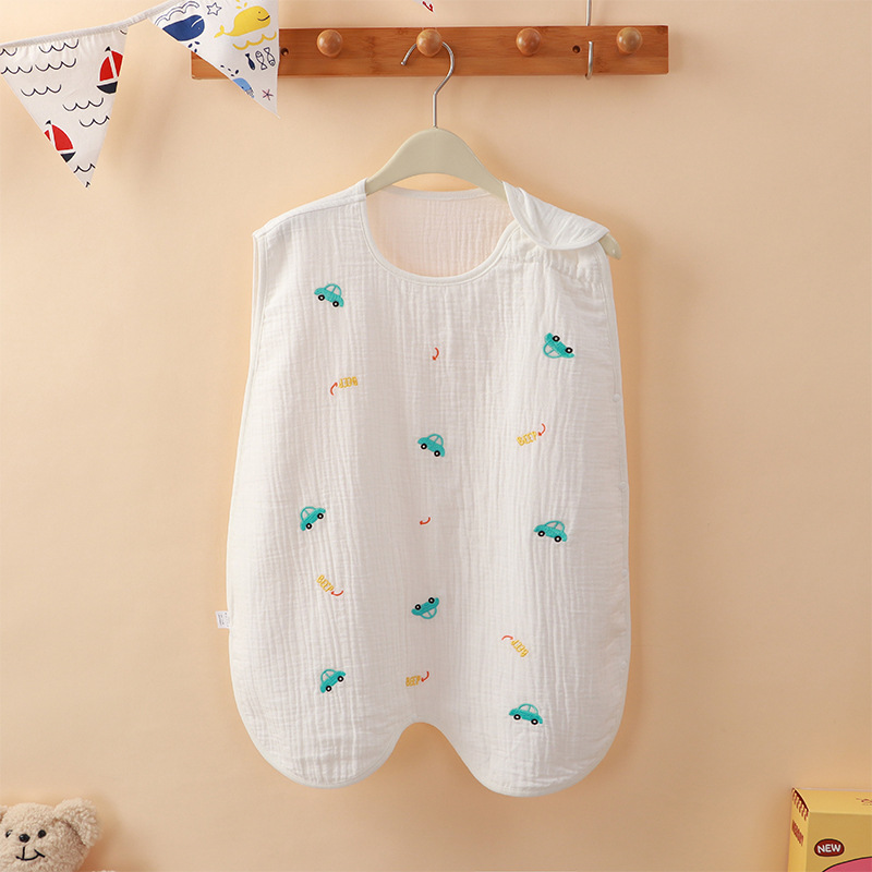 어린이 여름 슬리핑 백 거즈 나이트 가운 얇은 민소매 조끼 킥 방지 하위 아동 아티팩트 런치 브레이크 파자마 홈 의류