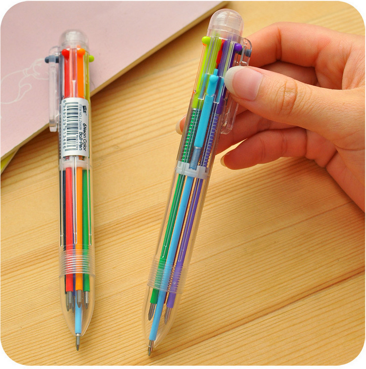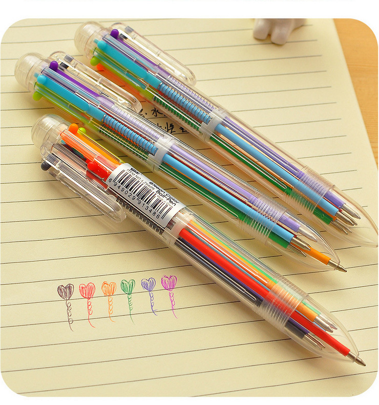 창조적 인 6 색 볼펜 다채로운 펜 학생들을위한 멀티 컬러 펜 한 물 펜 무지개 스트로크 마크 핸드 계정 펜스토어 가기