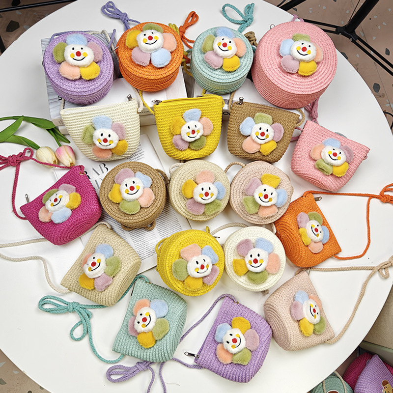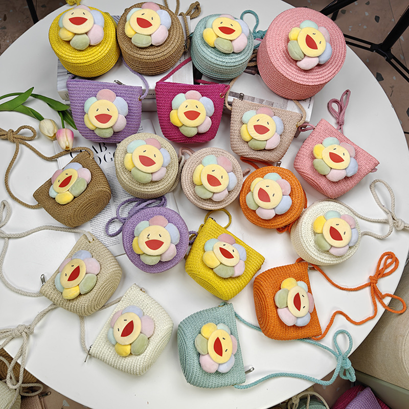 여름 어린이 가방, 여자아이 귀여운 밀짚 가방, 2025년 신상 아기 크로스백, 여자아이 해변 휴가용 작은 가방