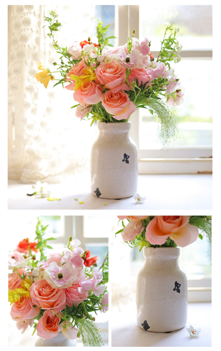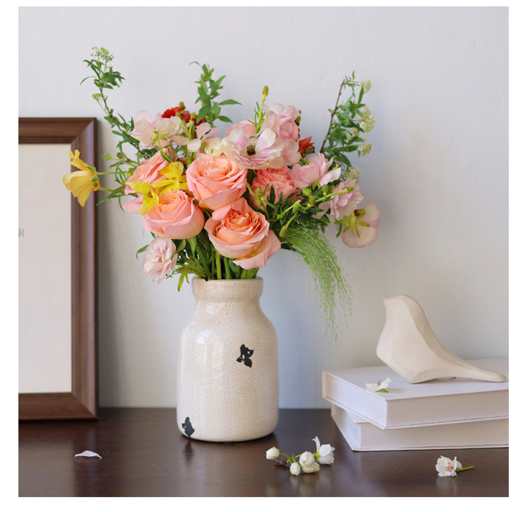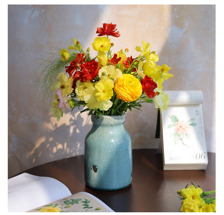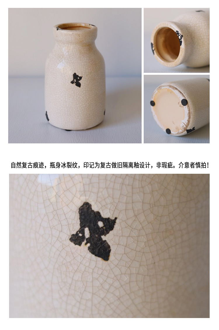 미국 세라믹 꽃병 빈티지 고민 얼음 균열 세라믹 작은 꽃병 테이블 최고 창조적 인 수경 꽃 장식 장식품
