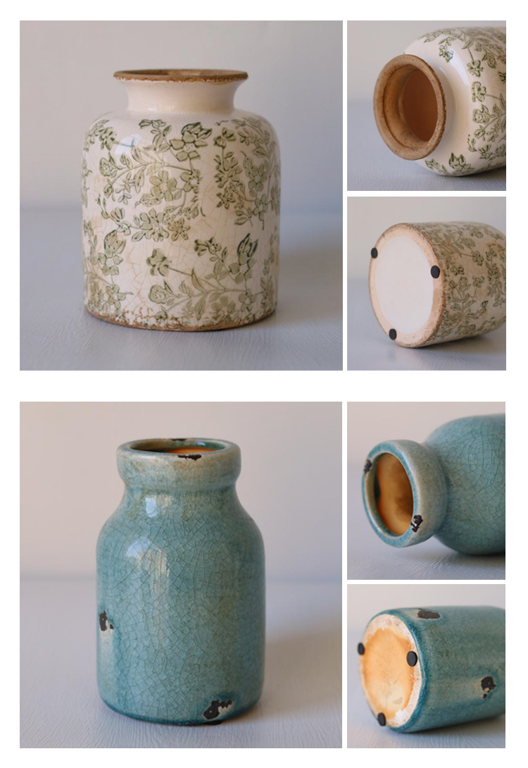 미국 세라믹 꽃병 빈티지 고민 얼음 균열 세라믹 작은 꽃병 테이블 최고 창조적 인 수경 꽃 장식 장식품스토어 가기