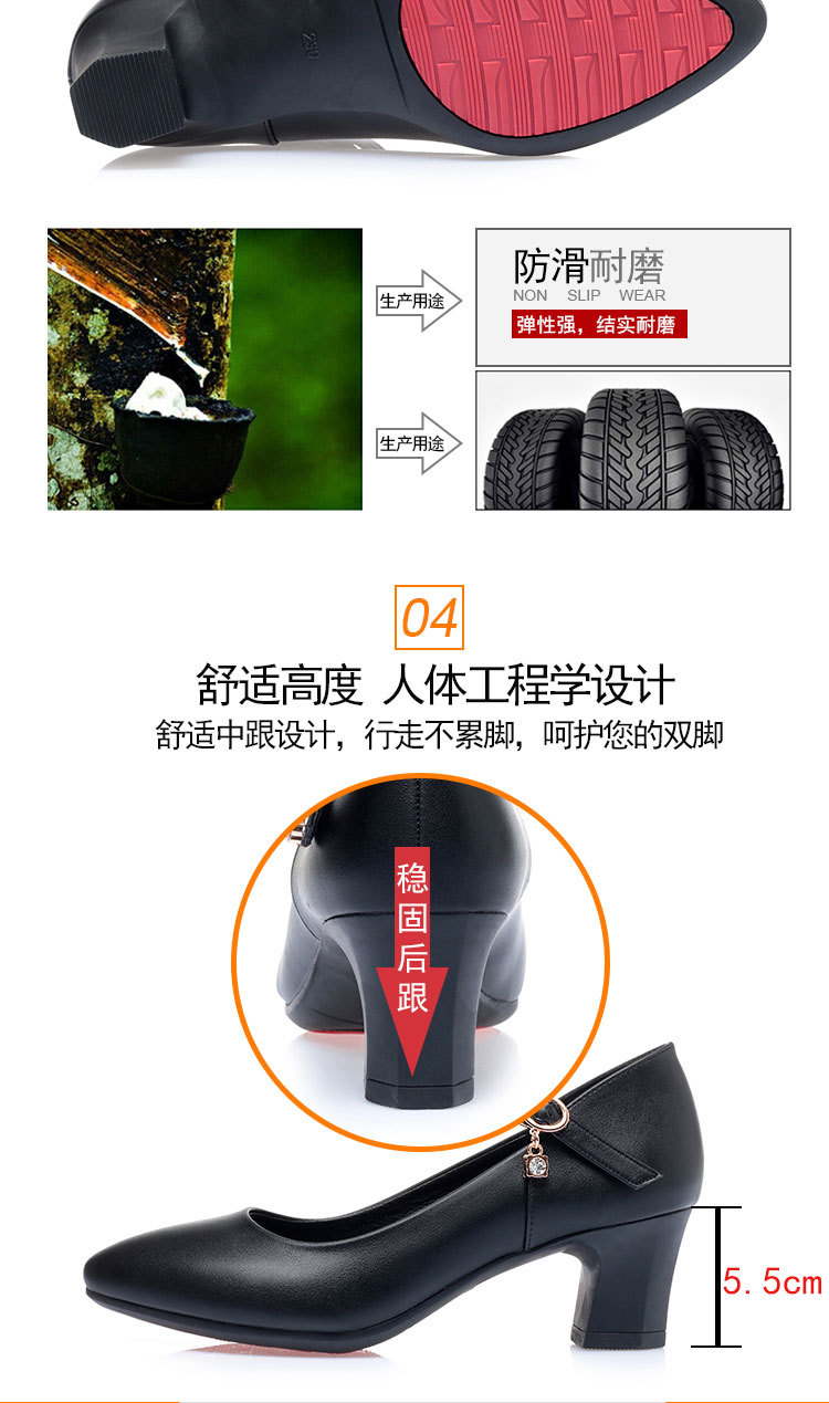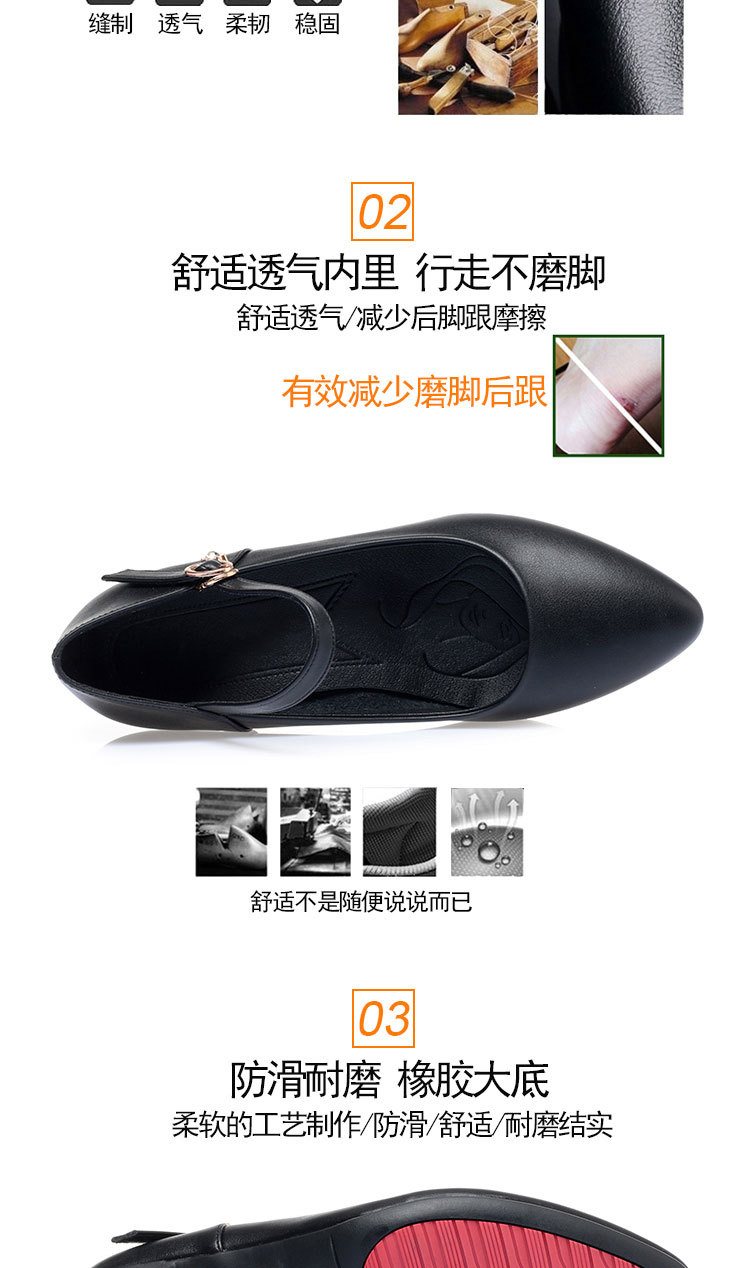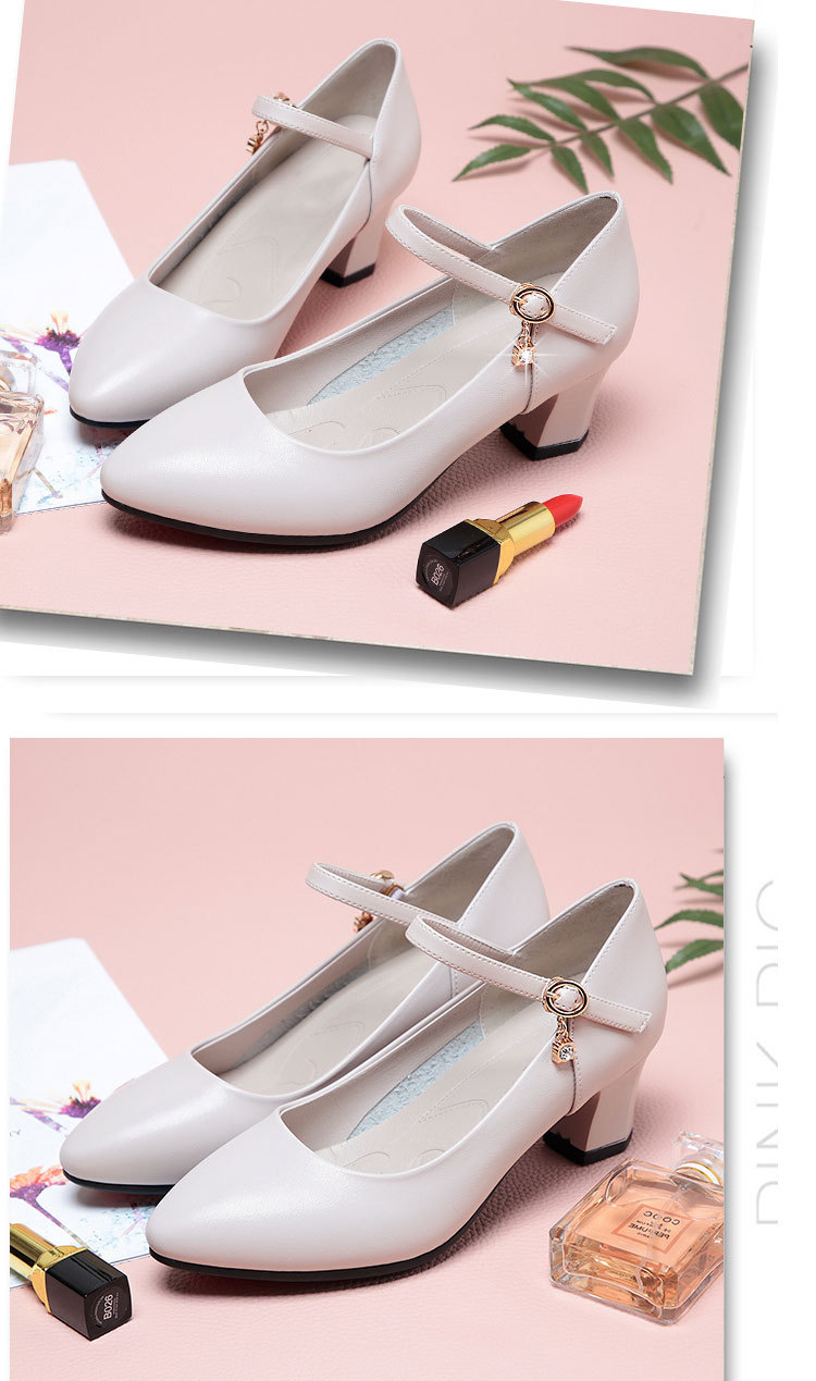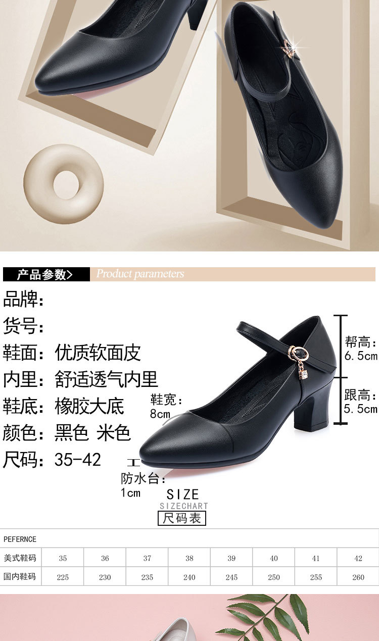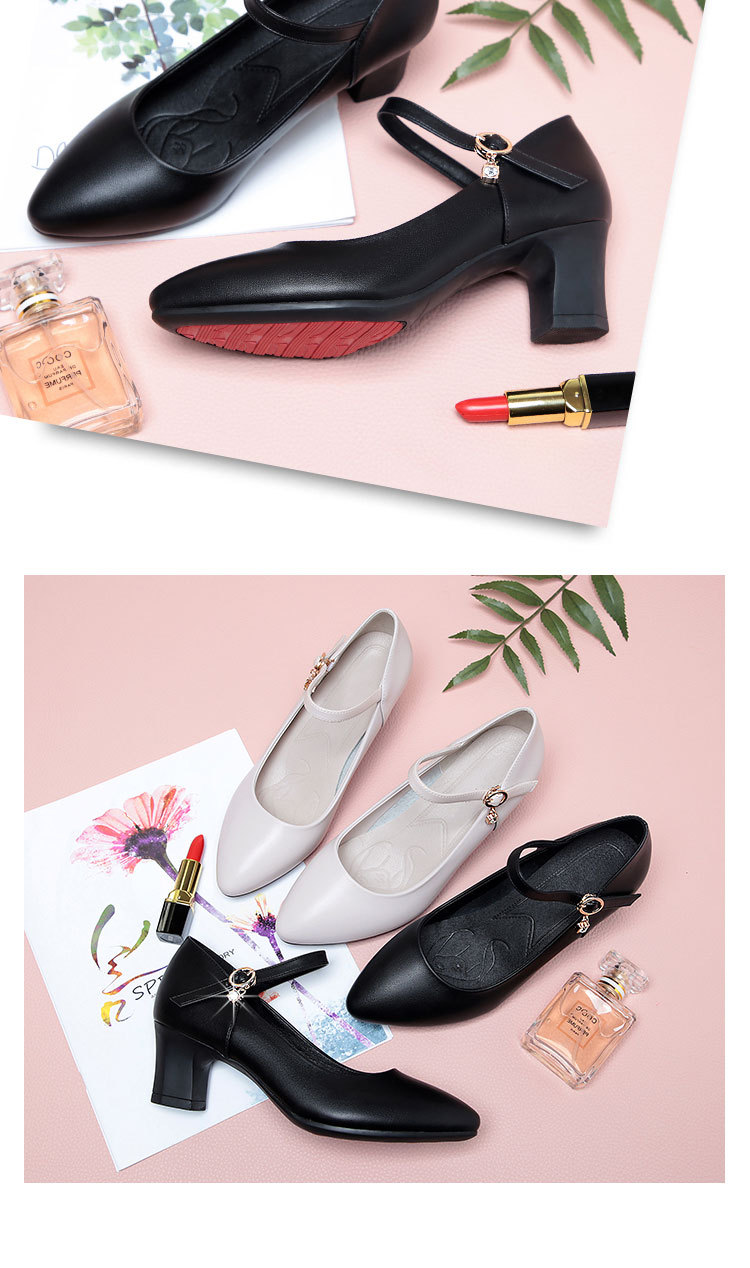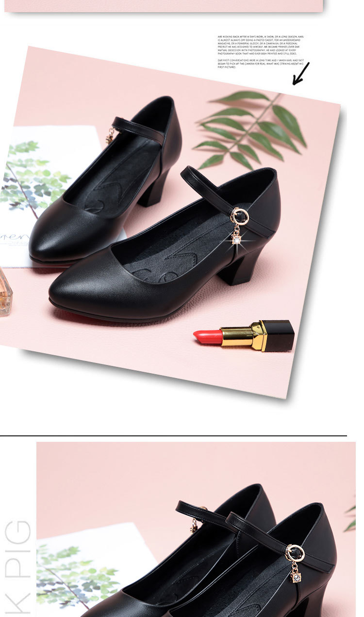 봄과 가을의 새로운 얕은 입 뾰족한 가죽 부드러운 바닥 올 매치 청키 힐 하이힐 슈즈와 버클 마더 슈즈 작업 신발스토어 가기