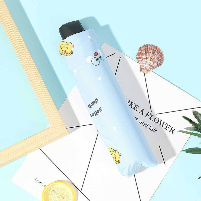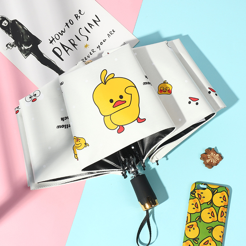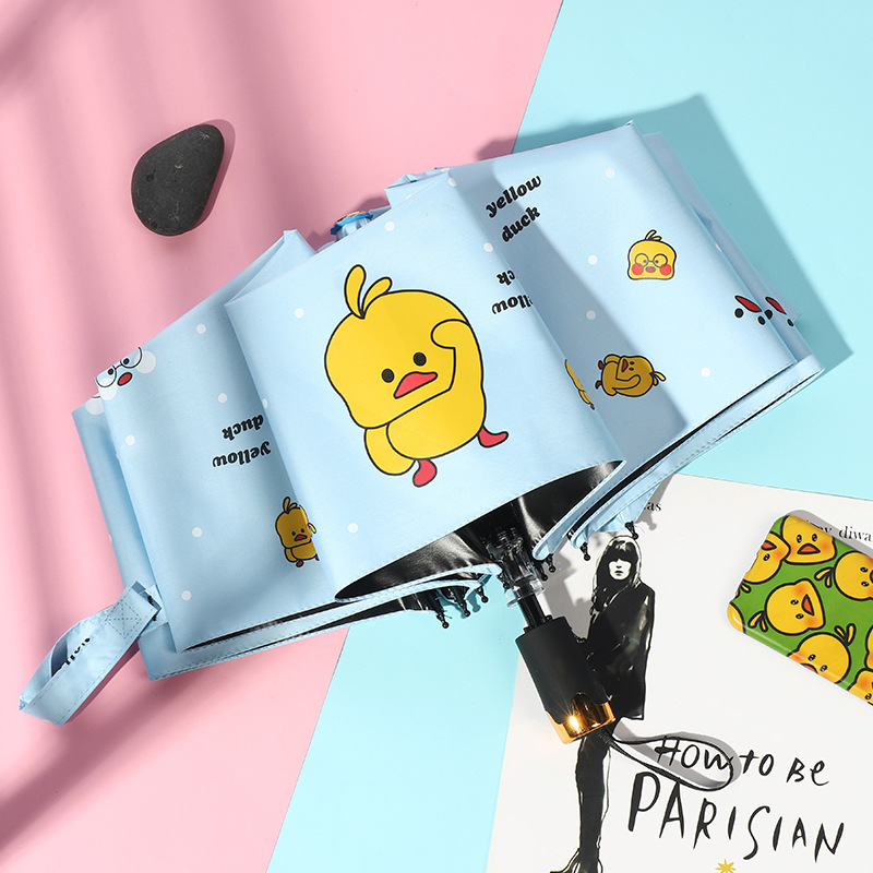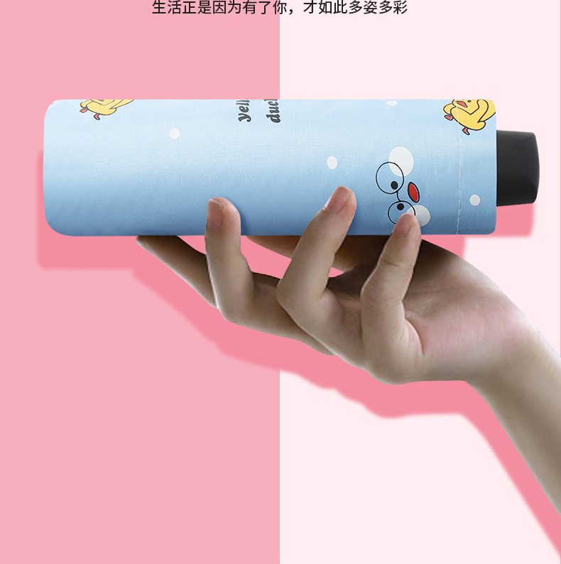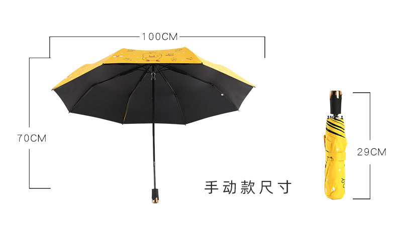 P66D 자동 우산 학생 선 스크린 UV 수동 우산 여성 세 접히는 검은 고무 태양 우산 남성과 어린이