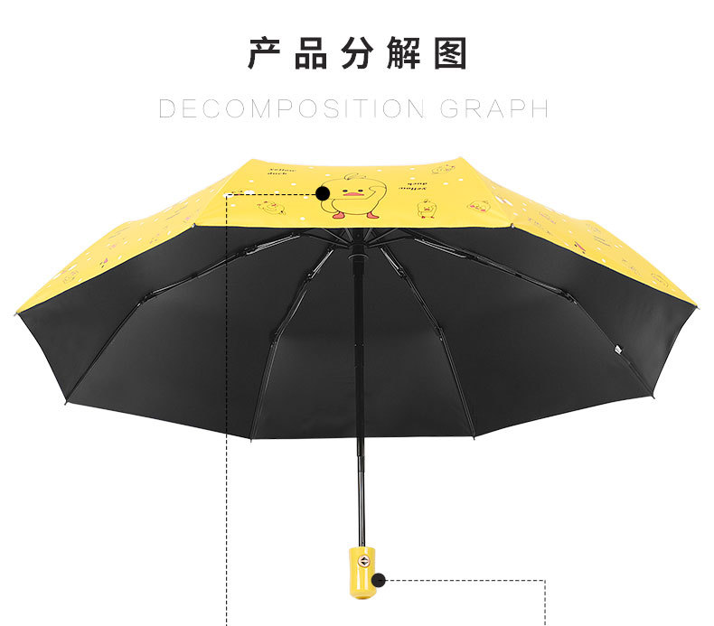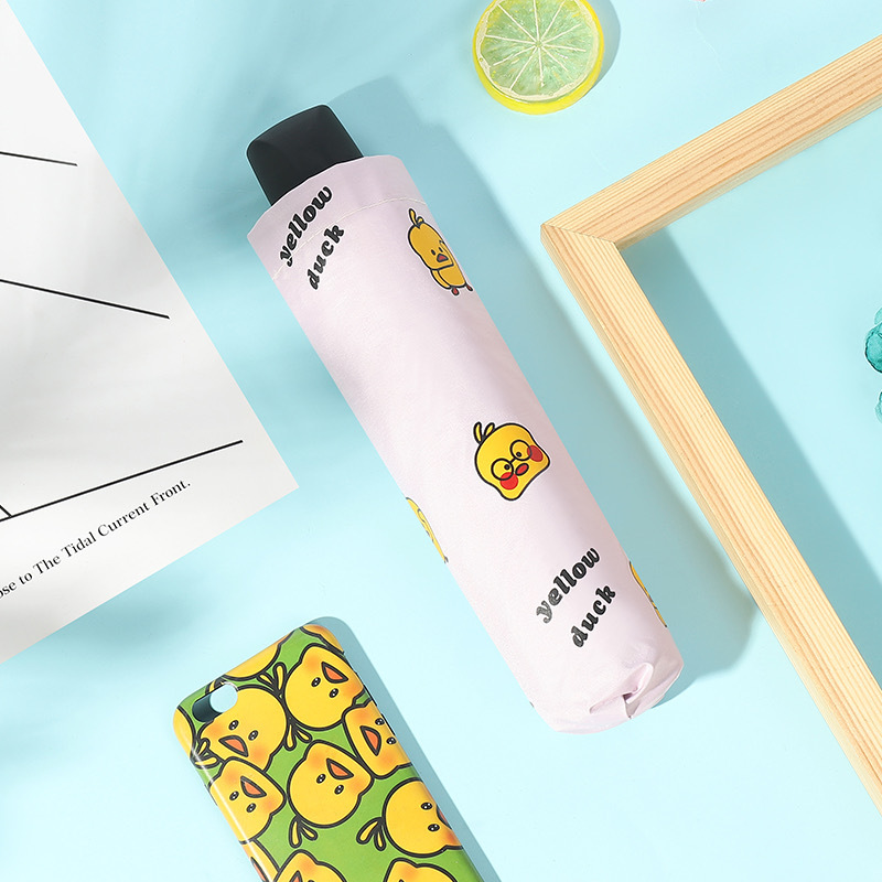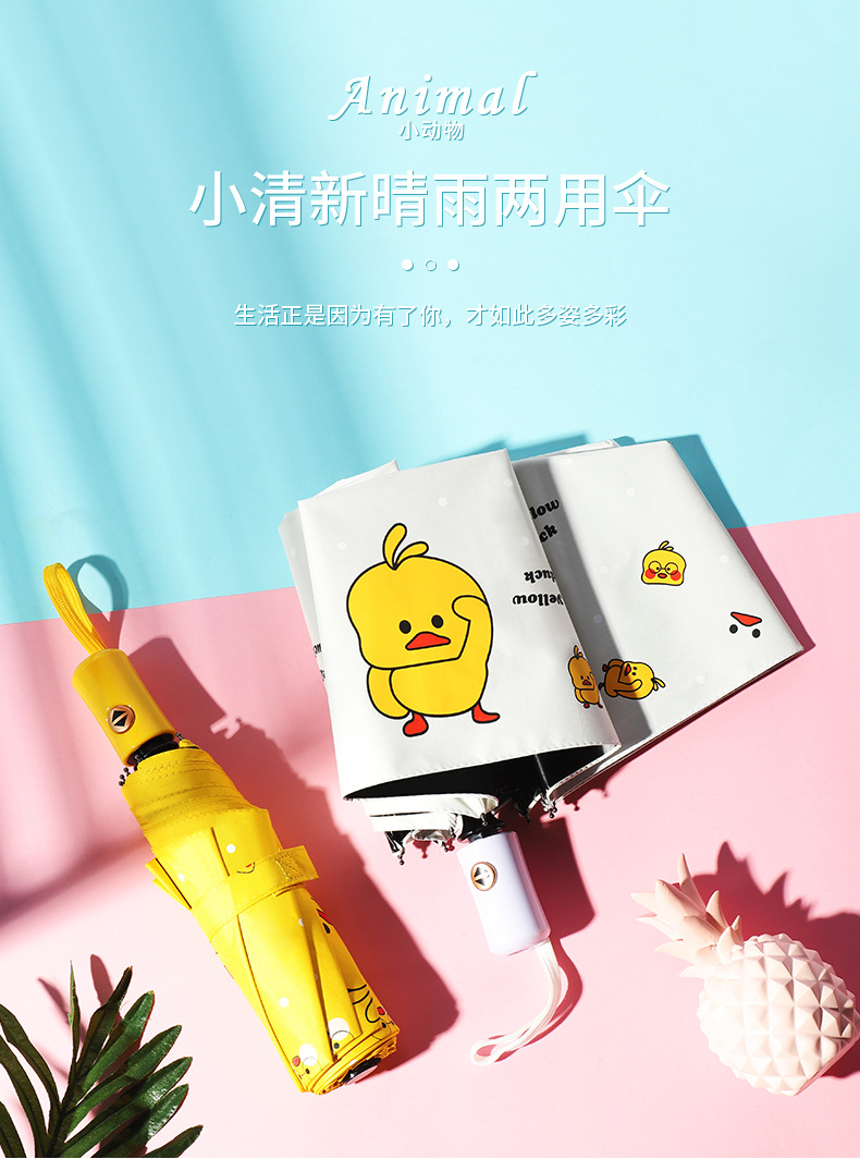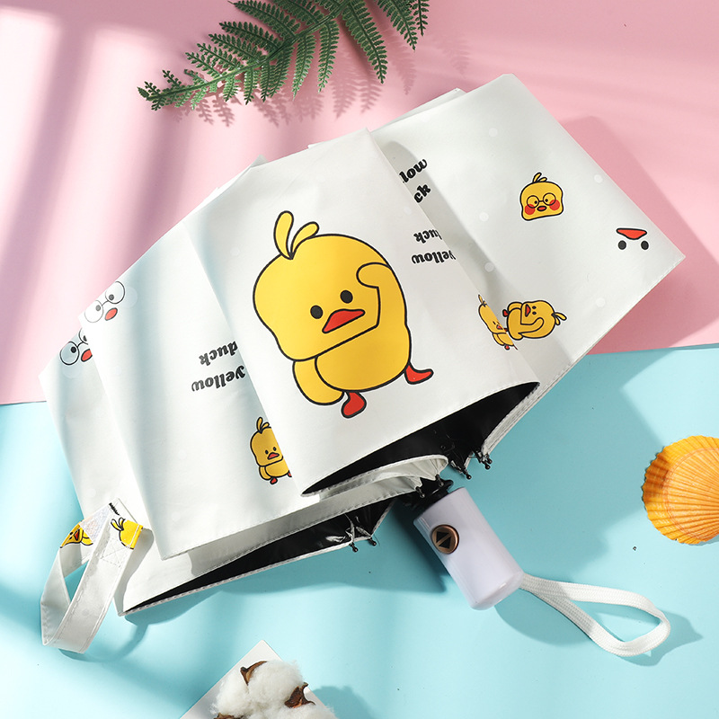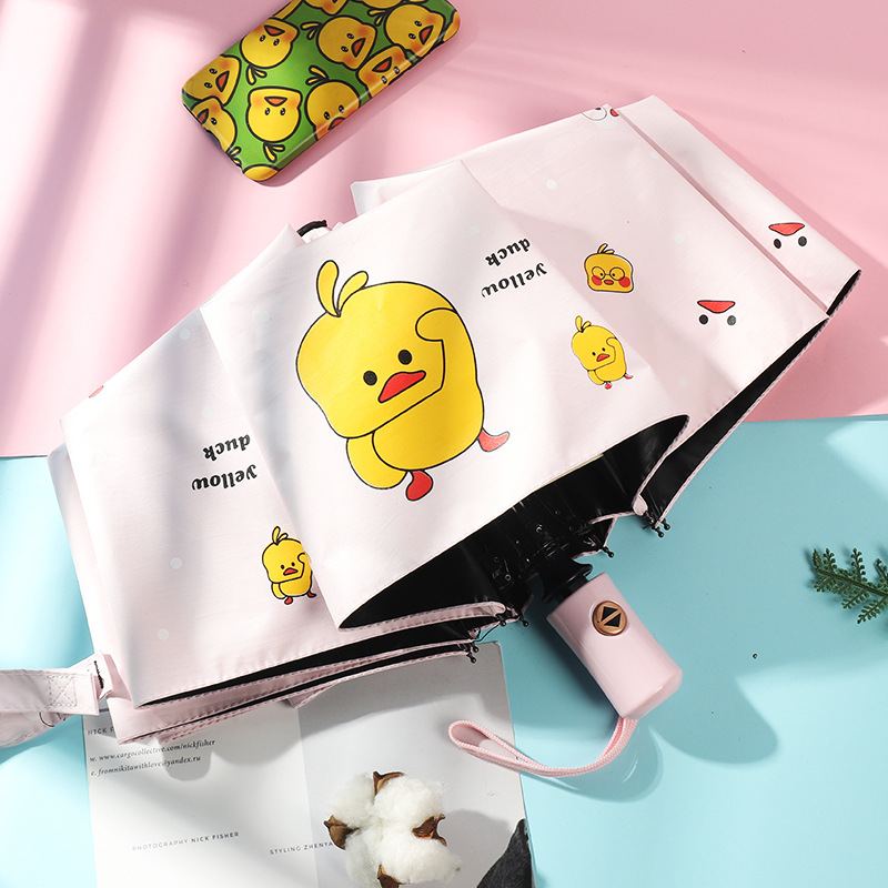 P66D 자동 우산 학생 선 스크린 UV 수동 우산 여성 세 접히는 검은 고무 태양 우산 남성과 어린이