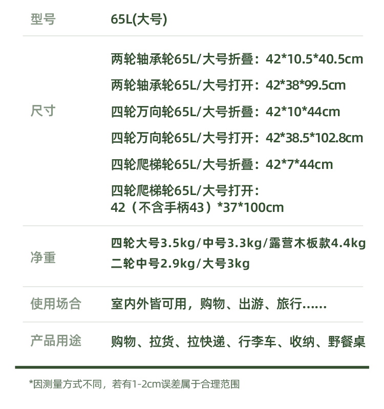 • [좋은 업그레이드 권장] 4 륜 대형 65L 모스 그린 스티커