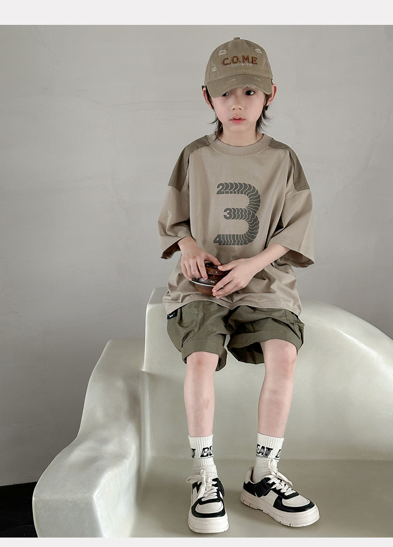 소년의 여름 옷 세트 2024 새로운 중형 및 대형 어린이 여름 짧은 소매 투피스 세트 소년의 여름 잘 생긴 유행 패션스토어 가기