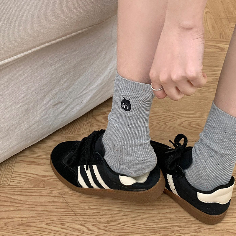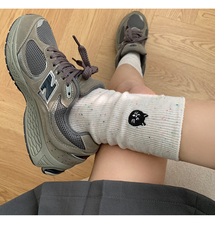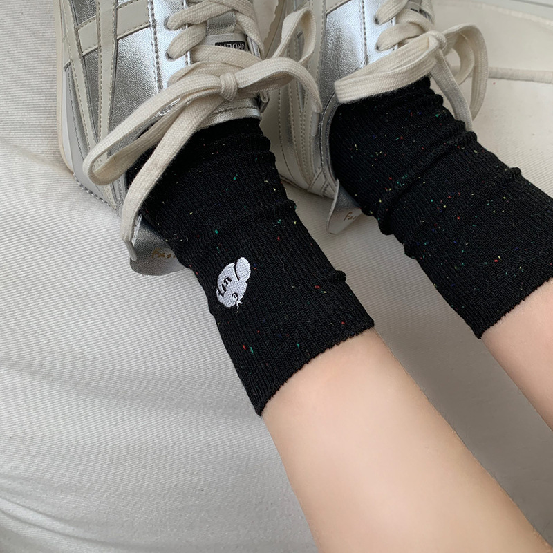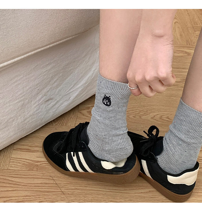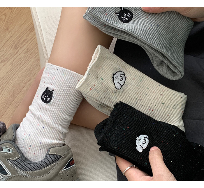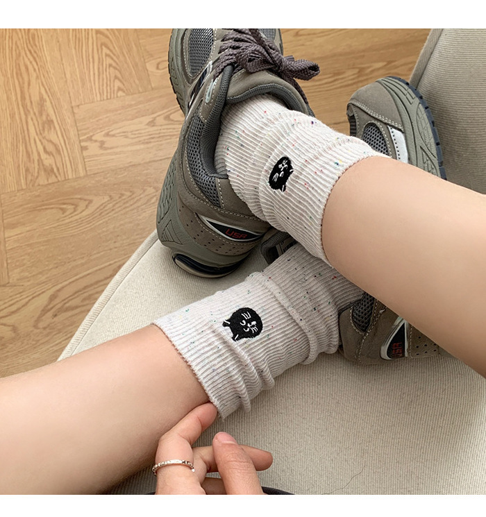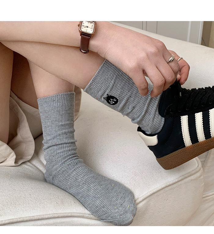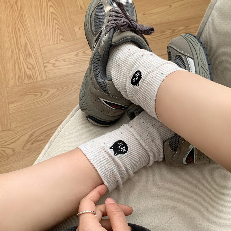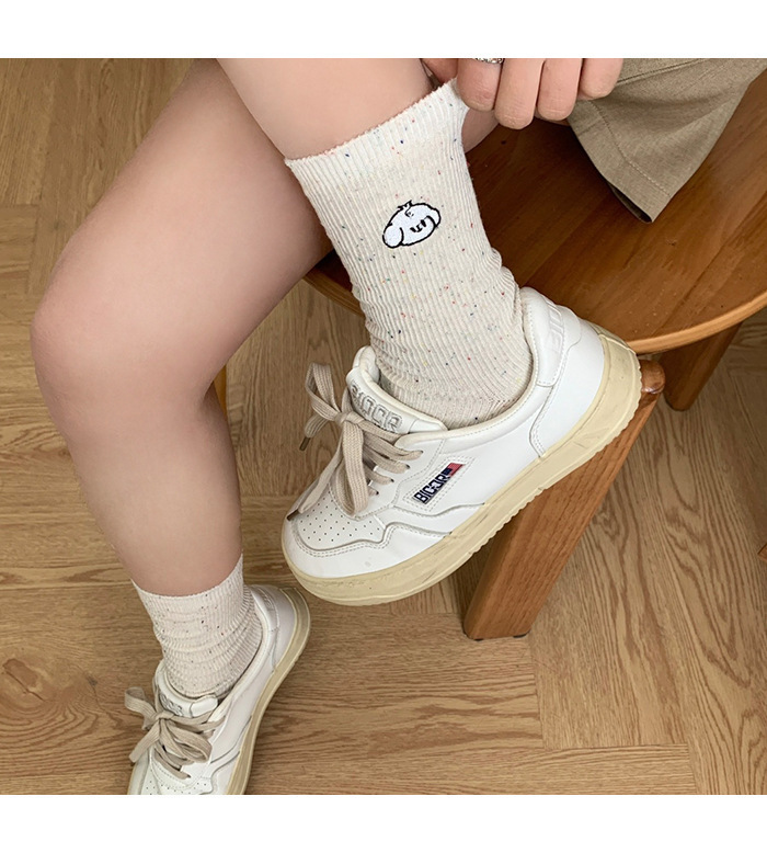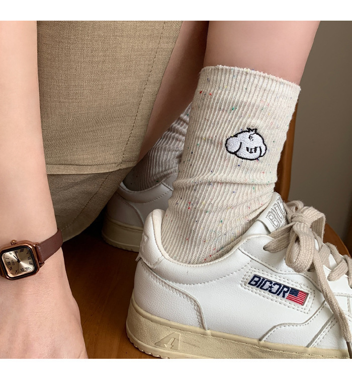 봄과 여름 도트 원사 자수 귀여운 개 만화 양말 여성의 중간 종아리 더미 양말, 트렌디 한 일본 순수한면 올 매치
