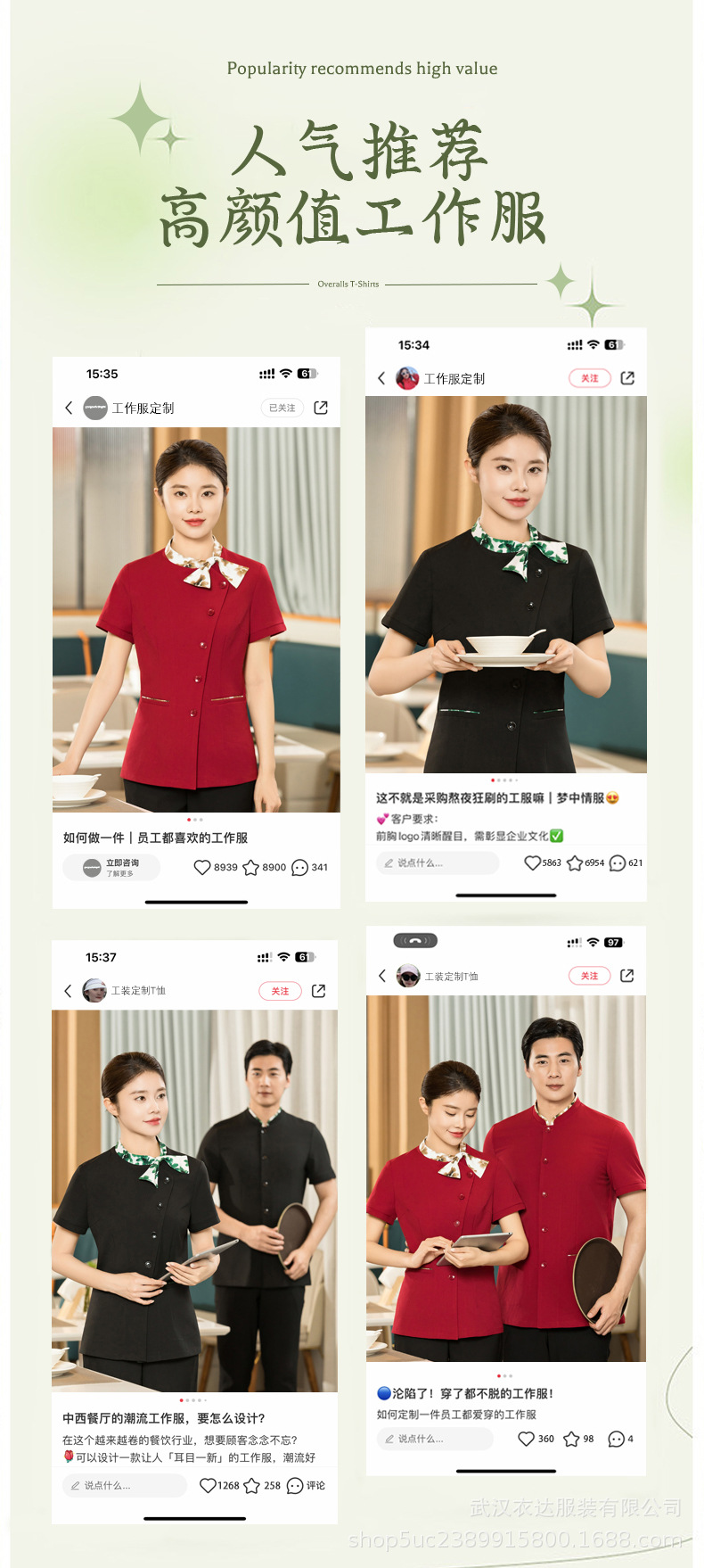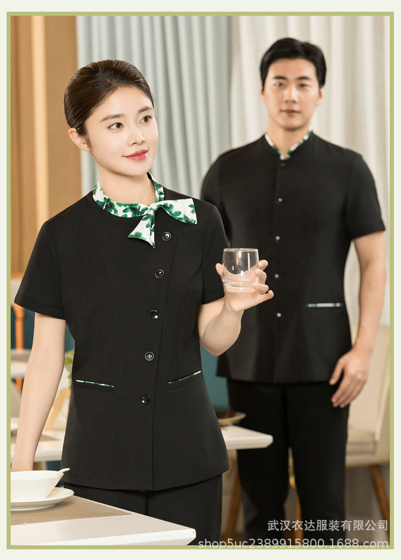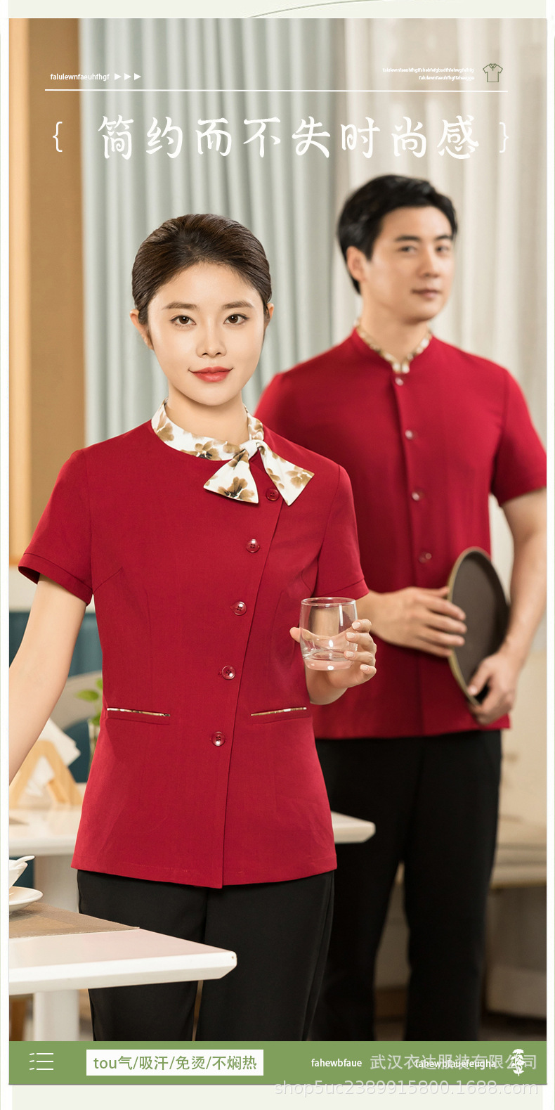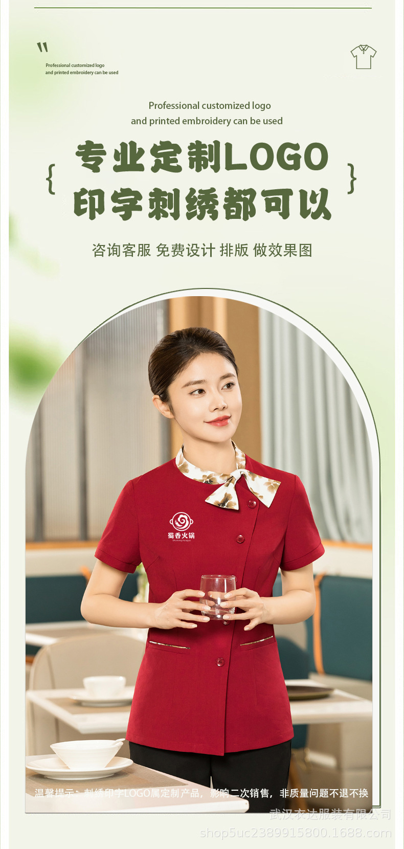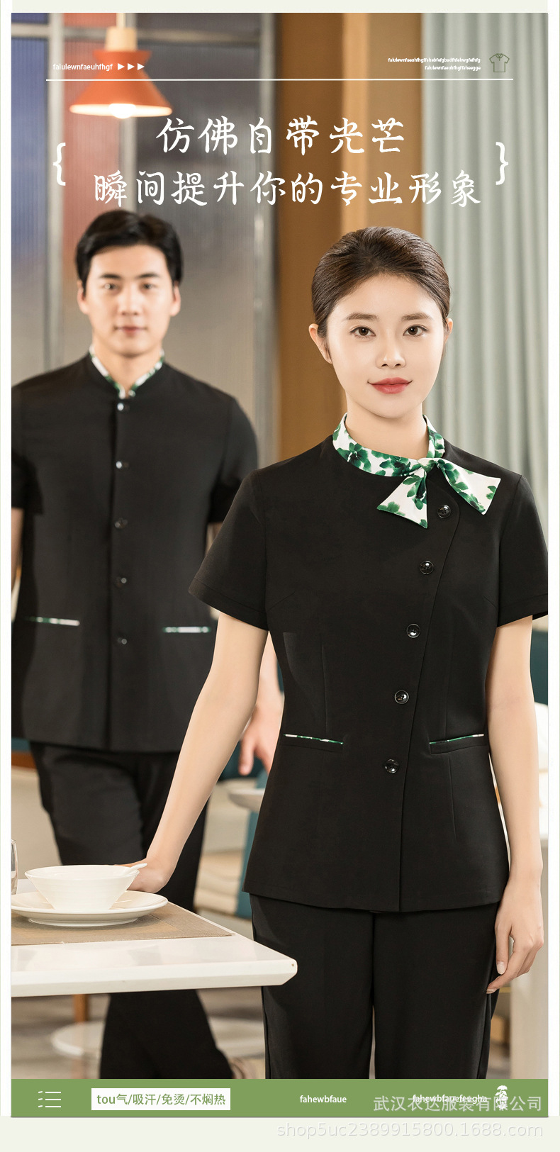 새로운 중국 취사 웨이터 작업복 짧은 소매 여성 호텔 냄비 레스토랑 Tea House 레스토랑 직원 의류 여름