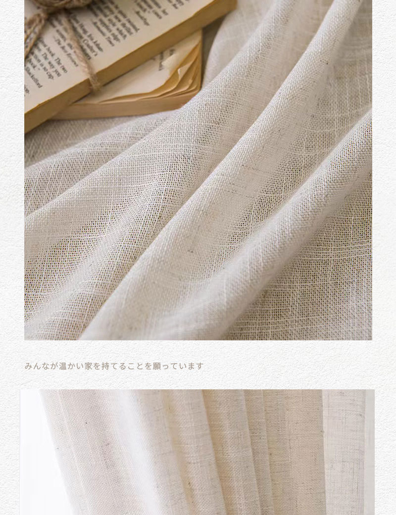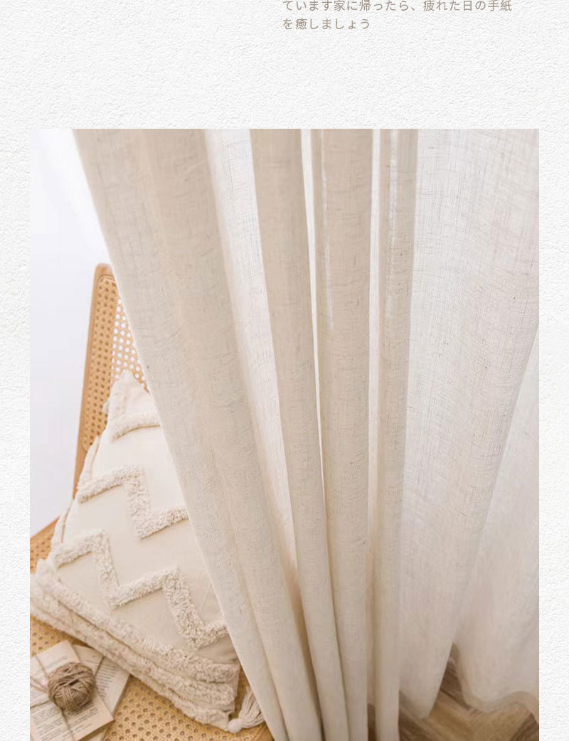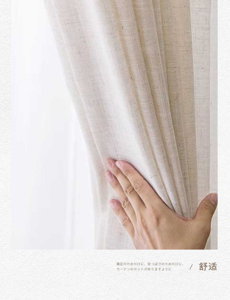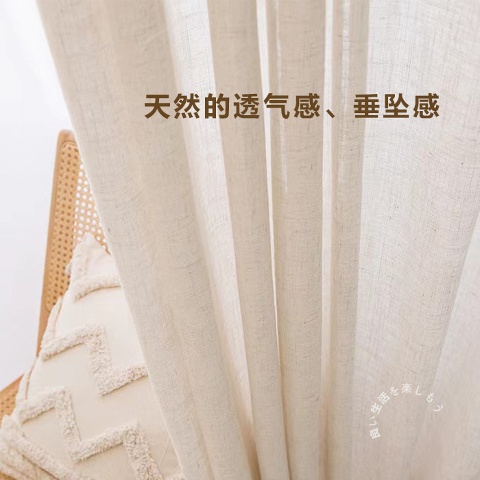 일본식 크림 색상 인 스타일 투명 린넨 원사 커튼 거즈 침실 소녀 거실 베이 창 두껍게