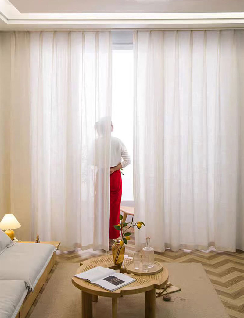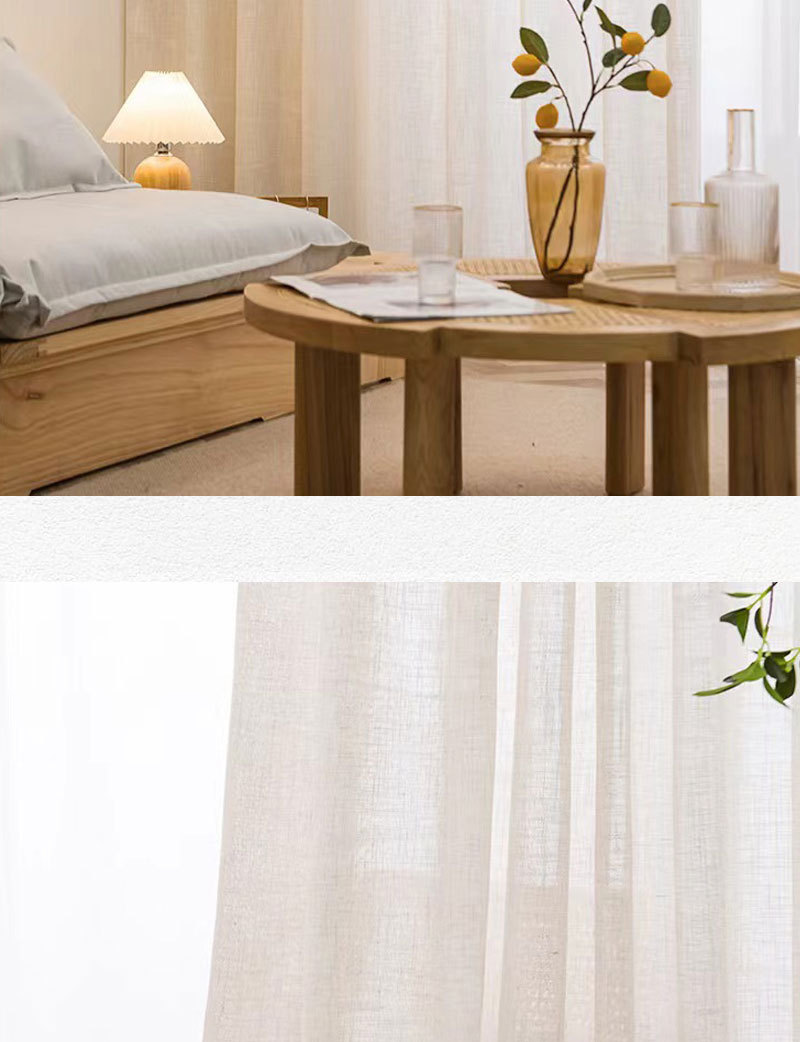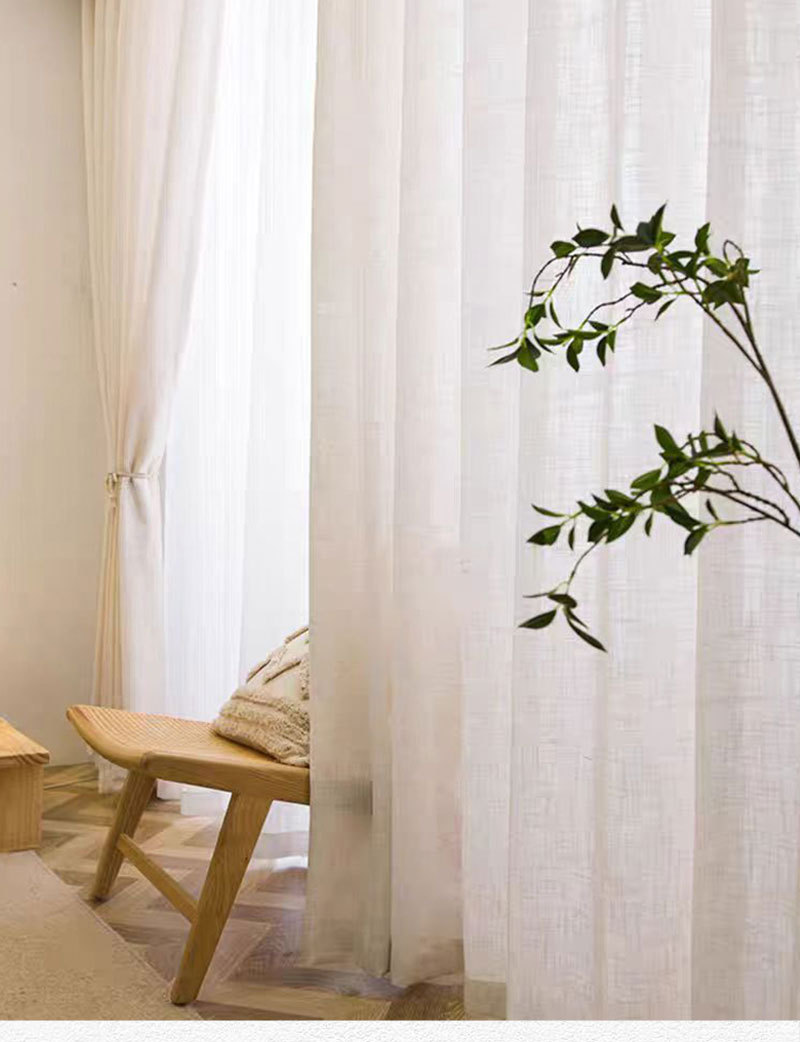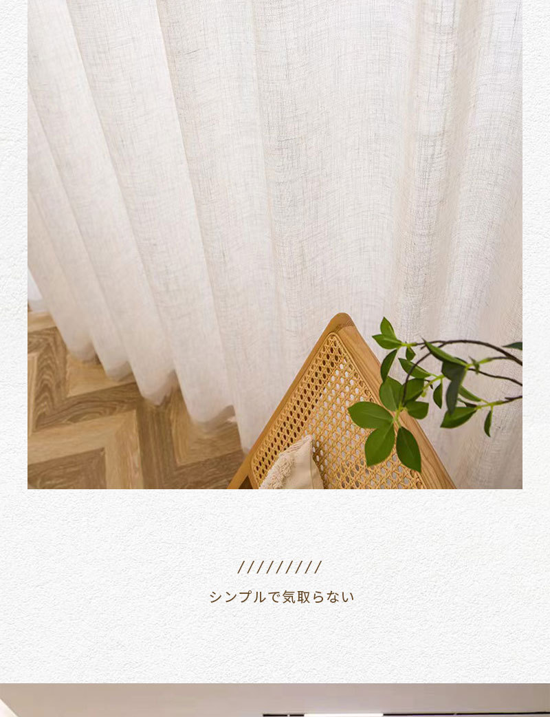 일본식 크림 색상 인 스타일 투명 린넨 원사 커튼 거즈 침실 소녀 거실 베이 창 두껍게