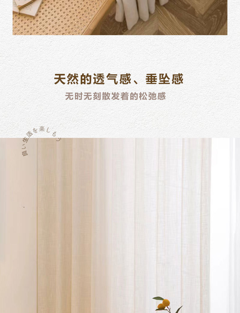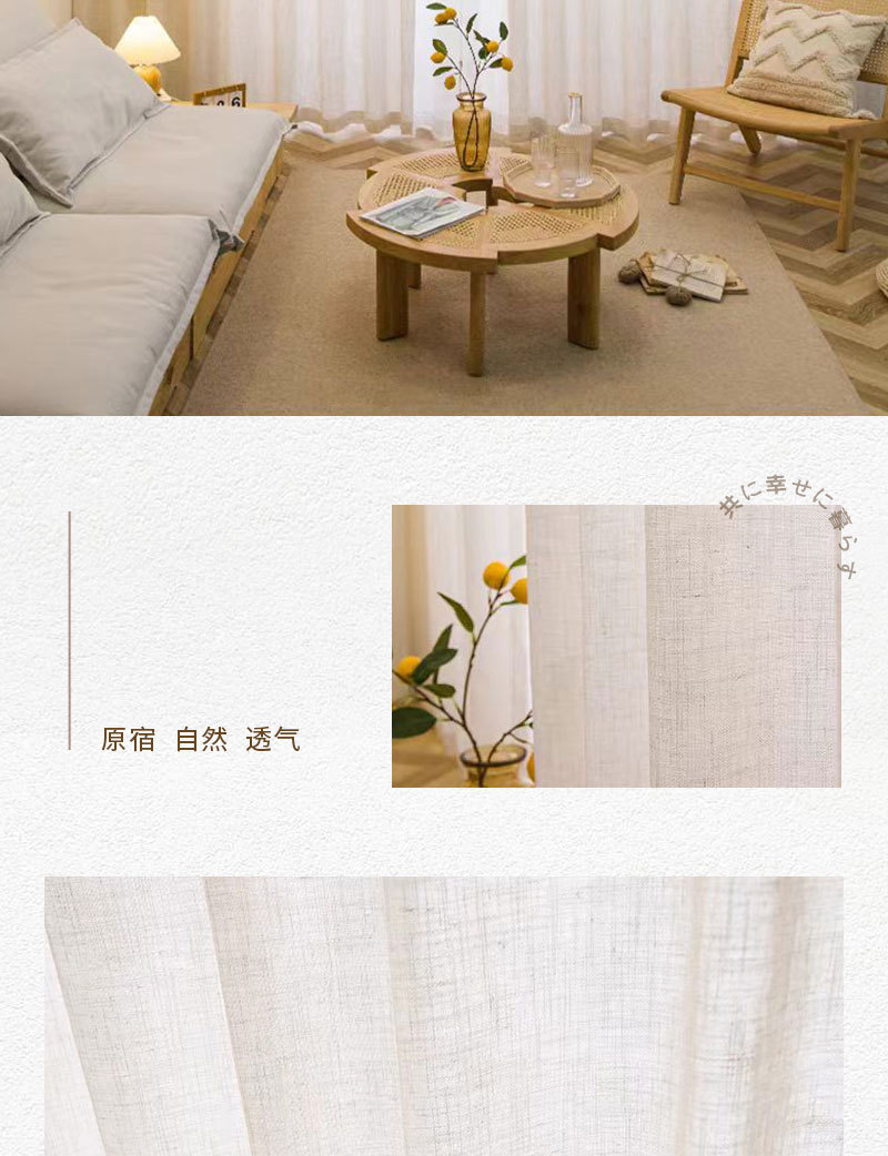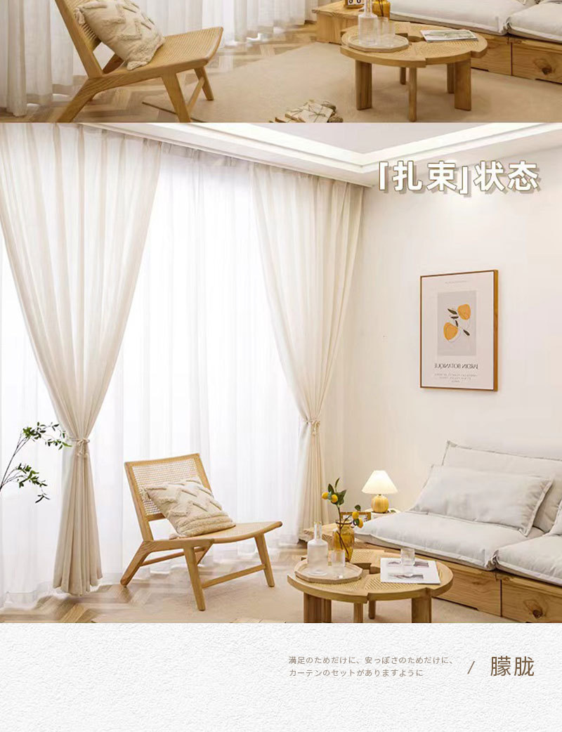 일본식 크림 색상 인 스타일 투명 린넨 원사 커튼 거즈 침실 소녀 거실 베이 창 두껍게스토어 가기