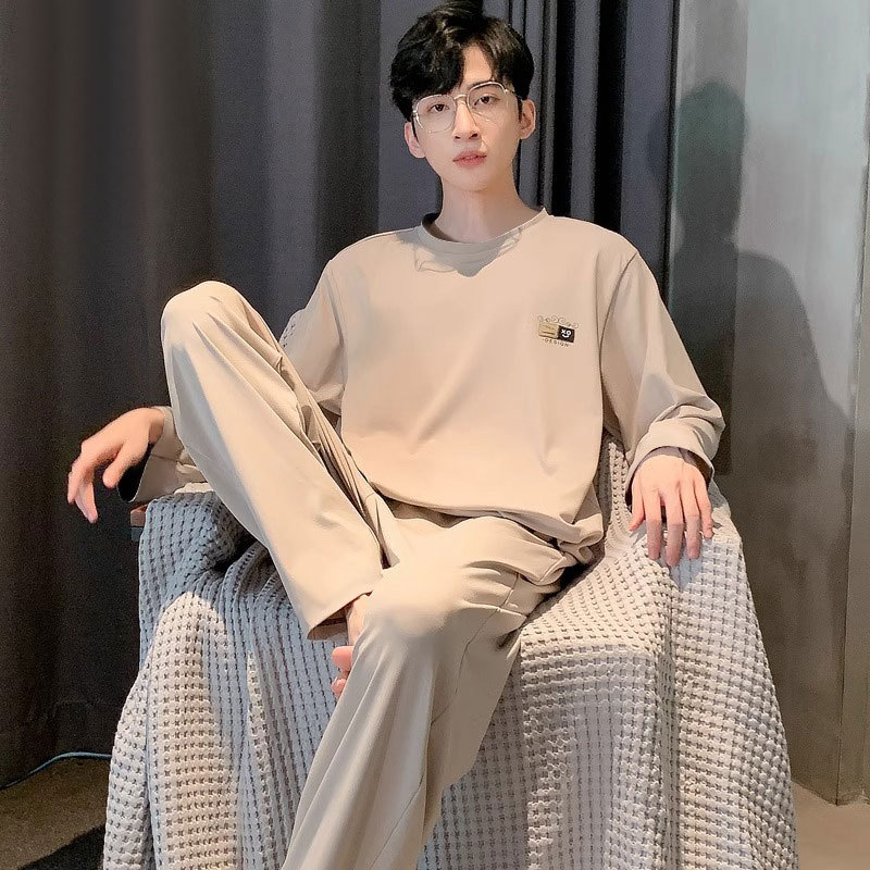 파자마 남성 인조면 봄과 가을 긴 소매 2024 새로운 봄과 가을 높은 감각 남성 홈 착용 둥근 목 세트스토어 가기