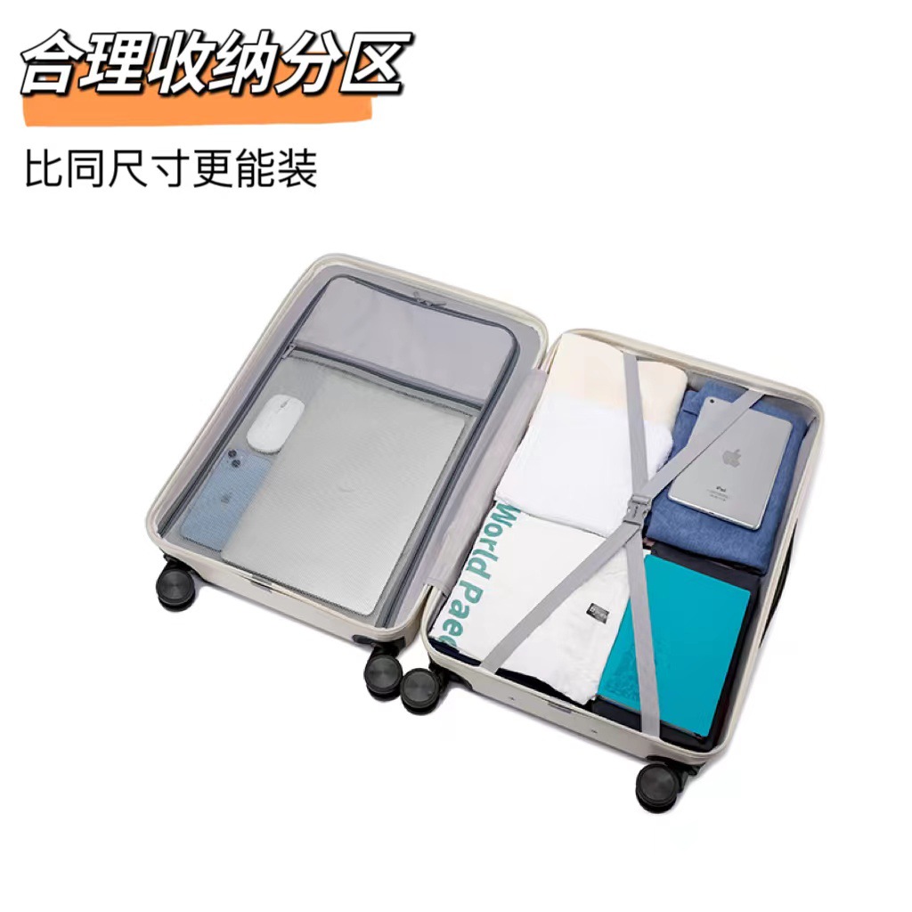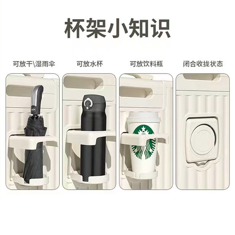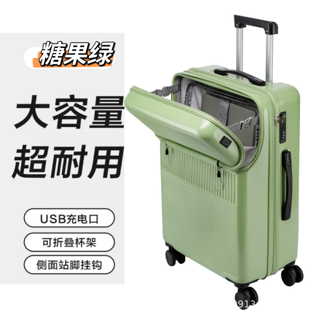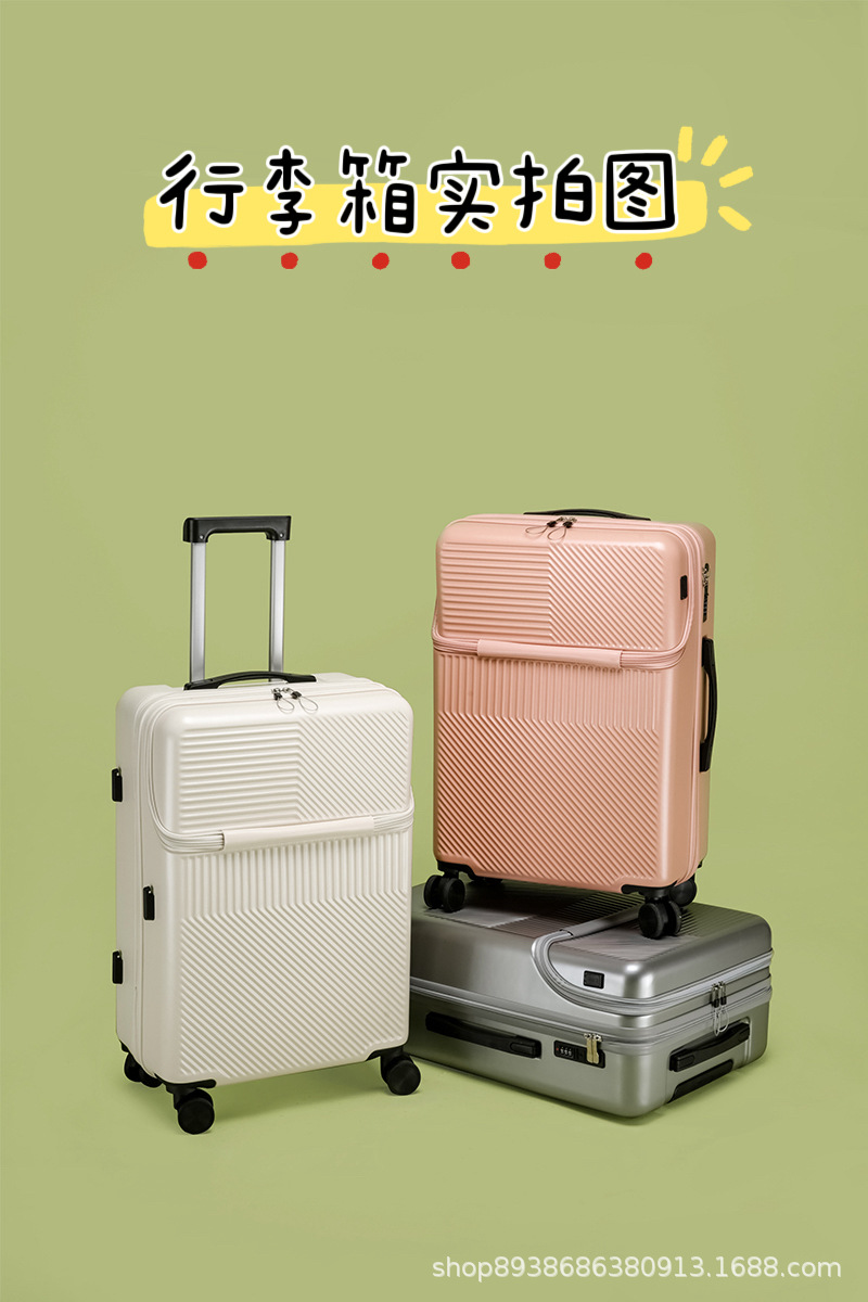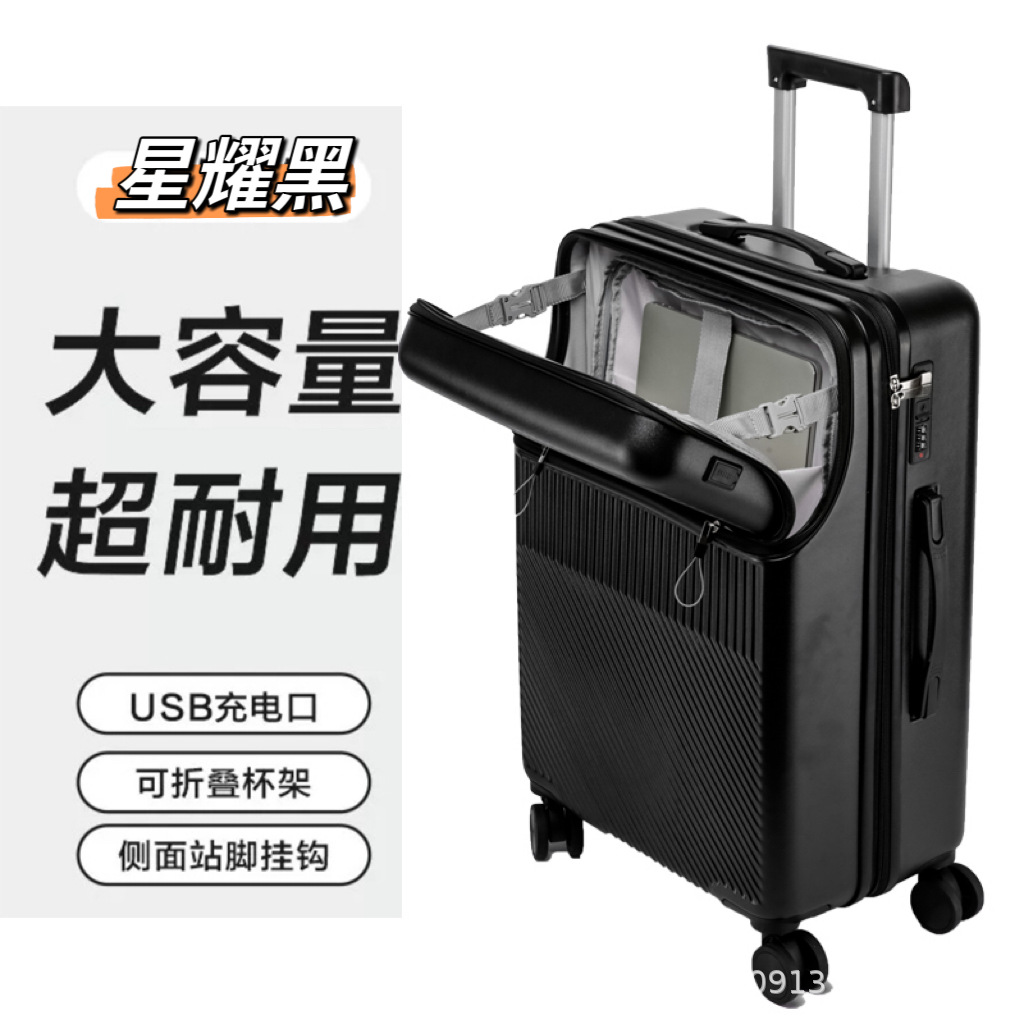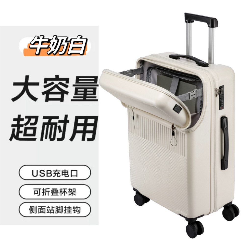 2023 새로운 다기능 전면 개방 수하물 여성 유니버설 휠 가방 충전 용 컵 홀더 트롤리 케이스스토어 가기
