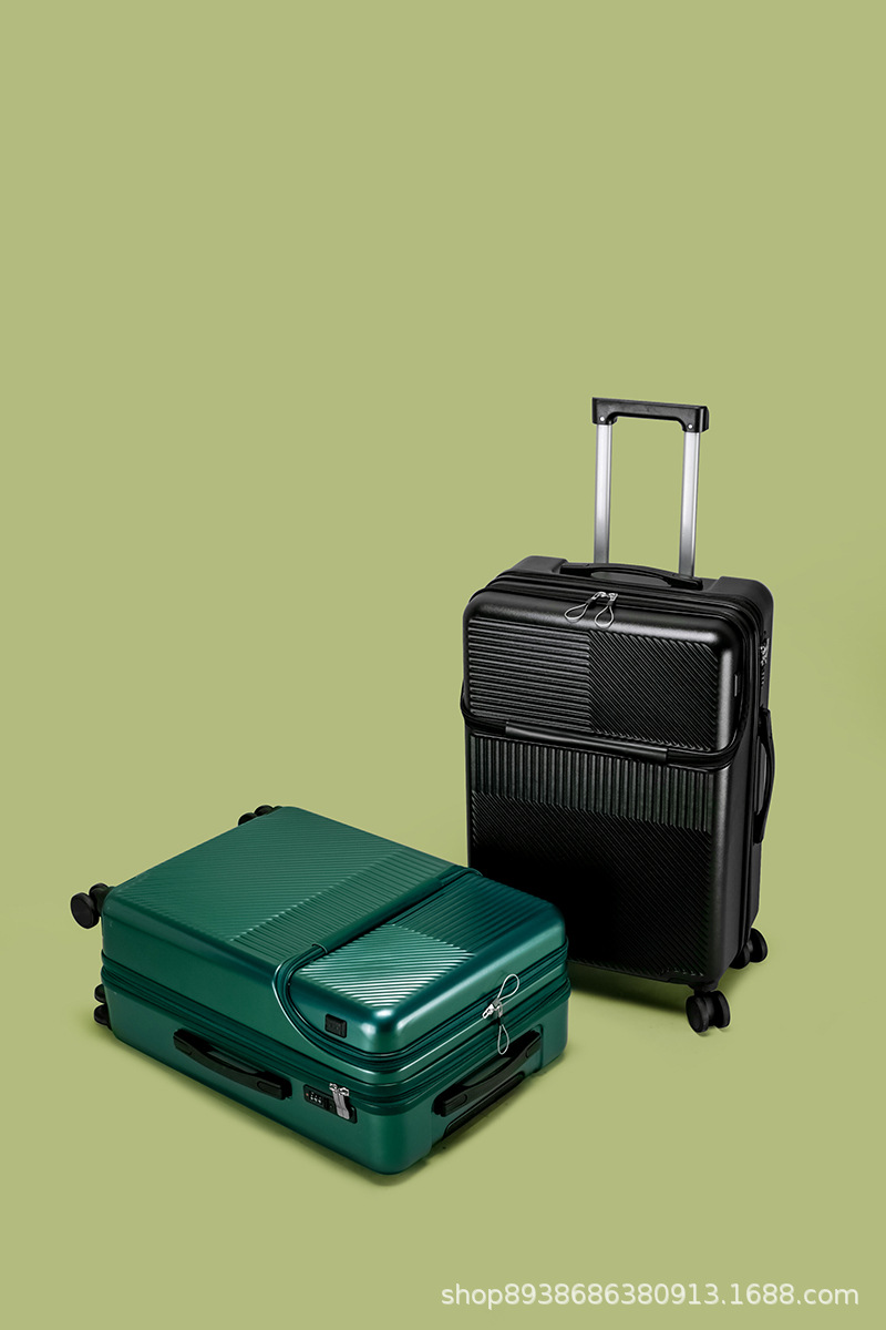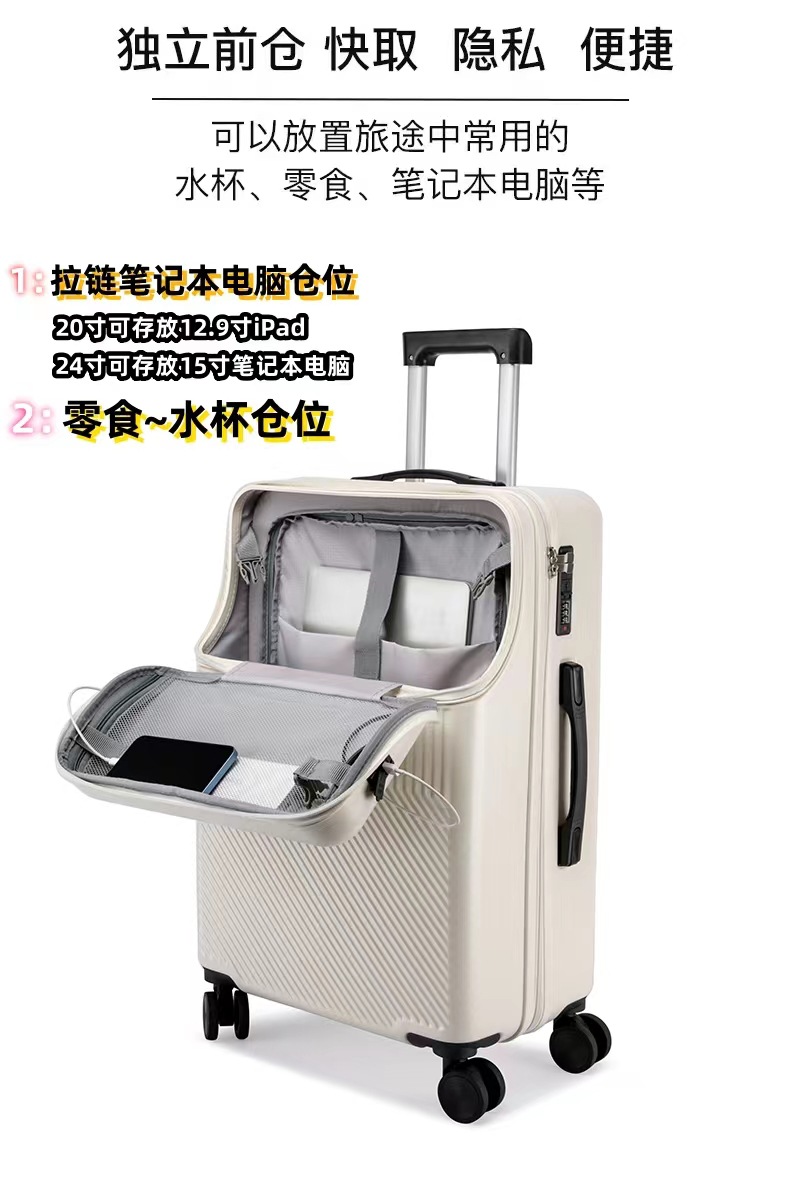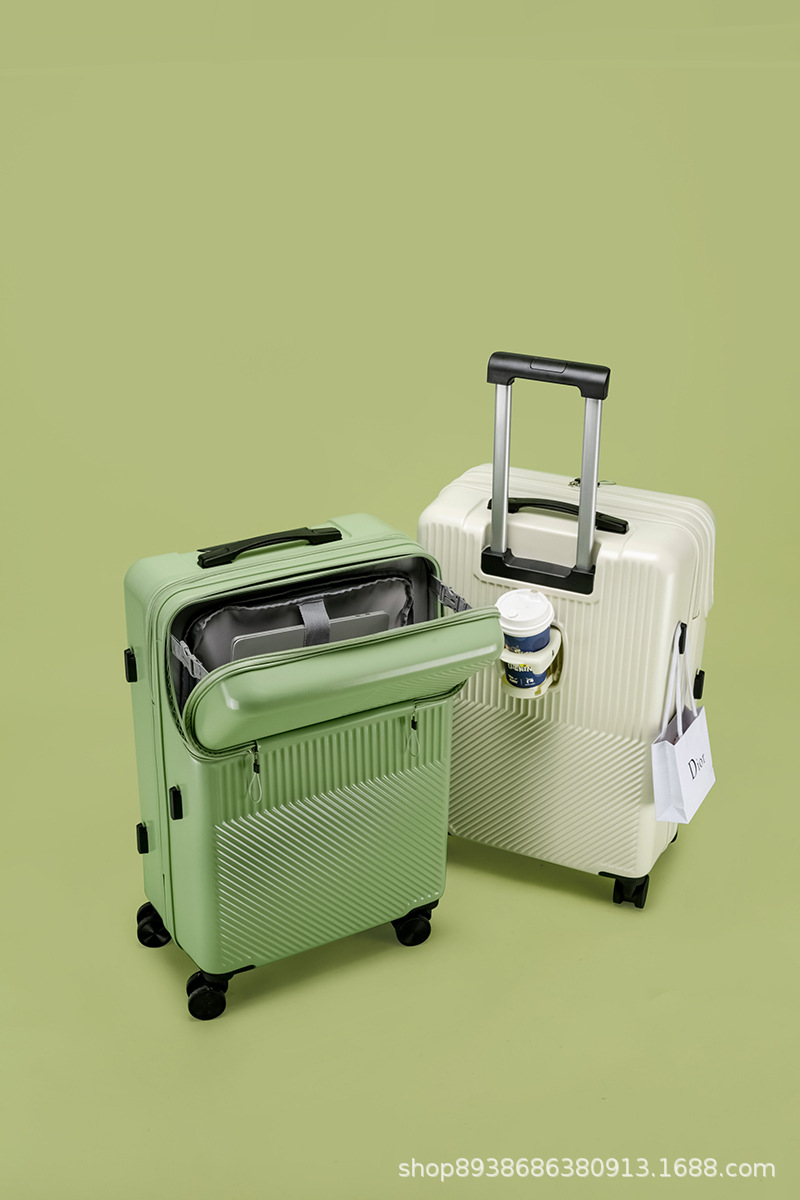 2023 새로운 다기능 전면 개방 수하물 여성 유니버설 휠 가방 충전 용 컵 홀더 트롤리 케이스