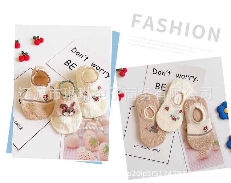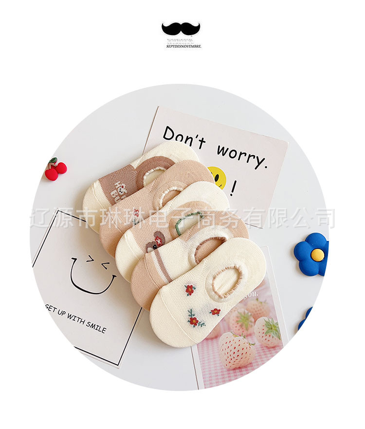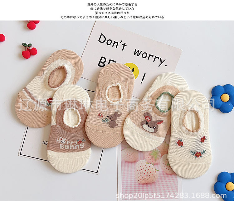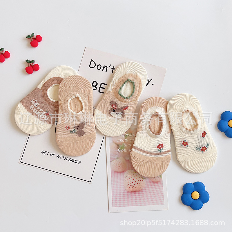 사랑의 진드기 어린이 양말 제조 업체 도매 재고 여름 얇은 만화 귀여운 학생 실리콘 미끄럼 방지 보이지 않는 양말스토어 가기