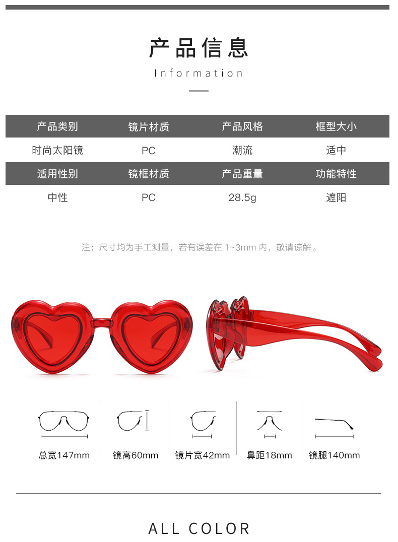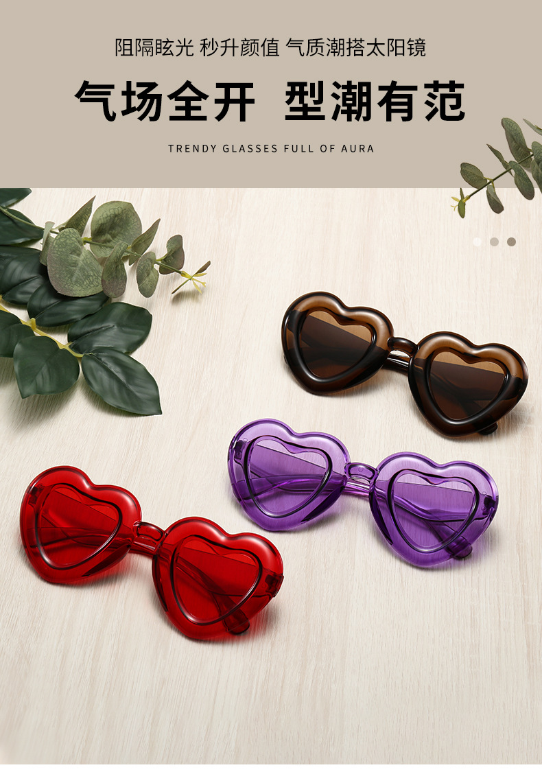 새로운 국경 간 사랑 패션 선글라스 맞춤형 INS 스타일 복숭아 심장 선글라스 인터넷 유명인 거리 촬영 댄스 재미있는 안경스토어 가기