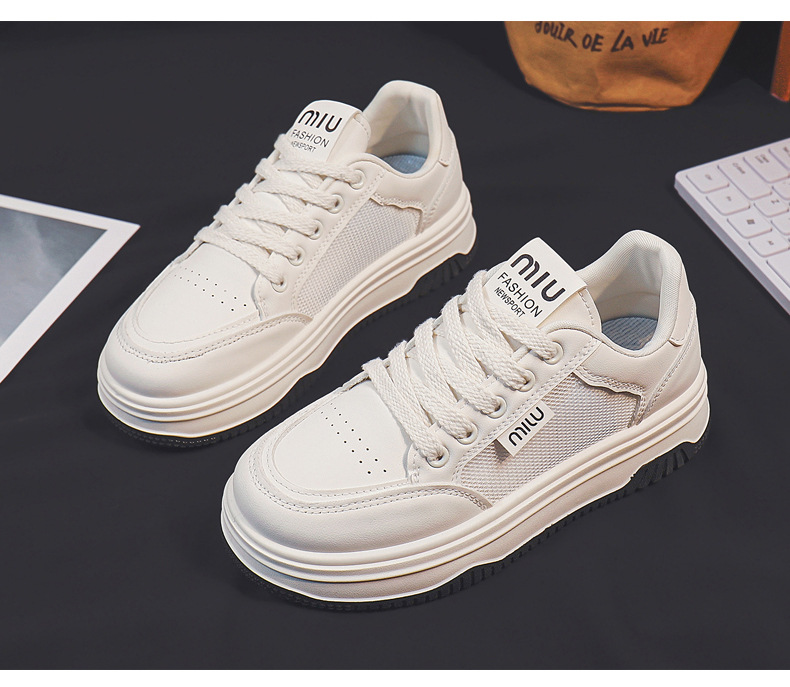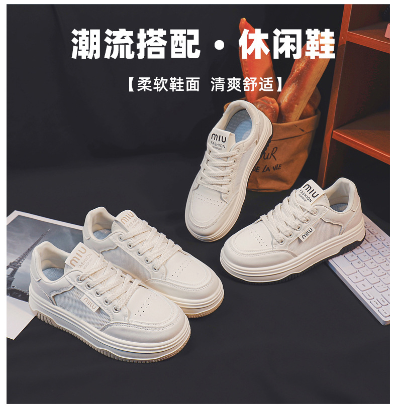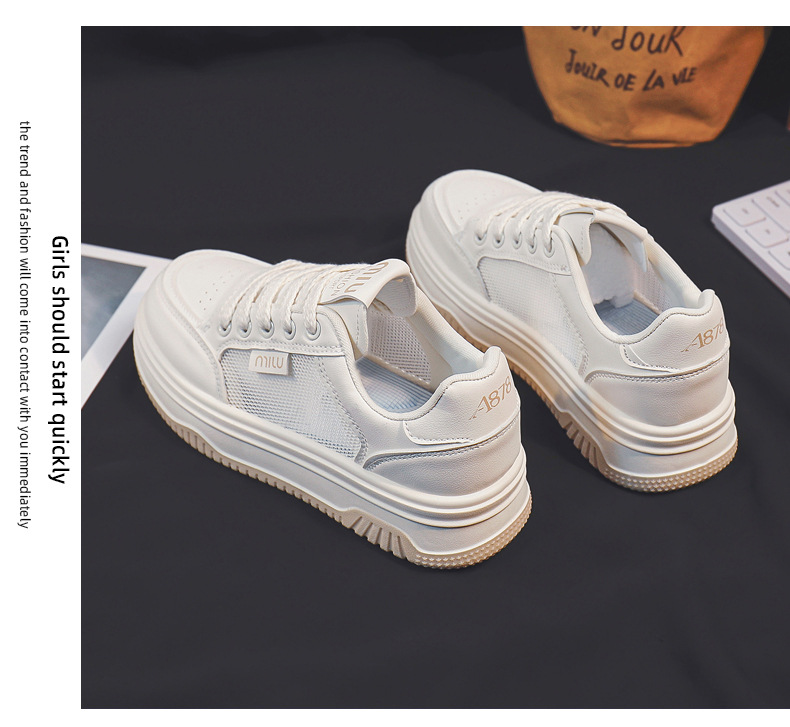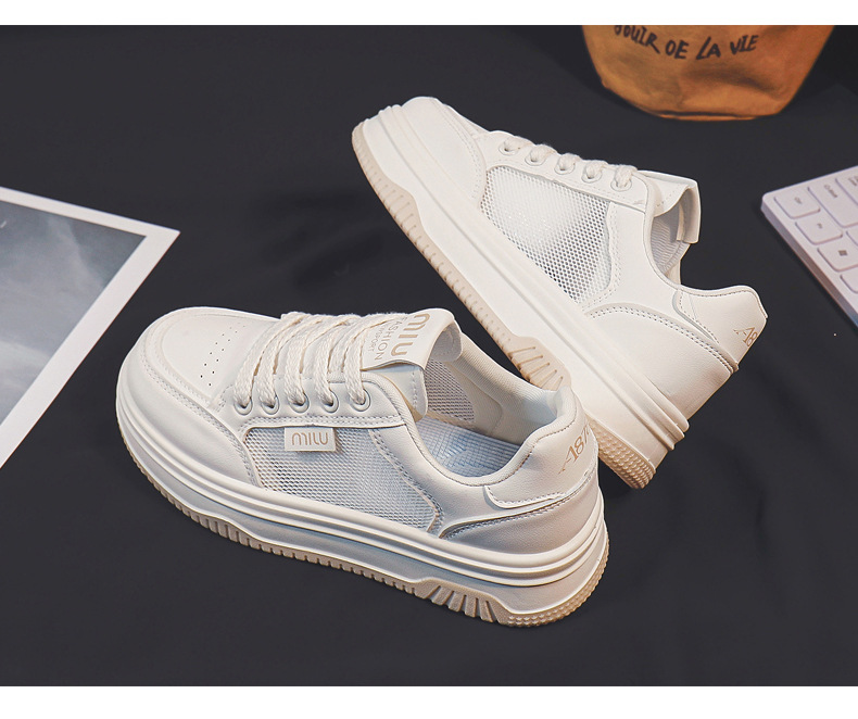 봄과 여름 2024 여성을위한 슈퍼 천 가죽 흰색 신발 새로운 올 매치 보드 신발 여성 틈새 플랫폼 메쉬 신발스토어 가기