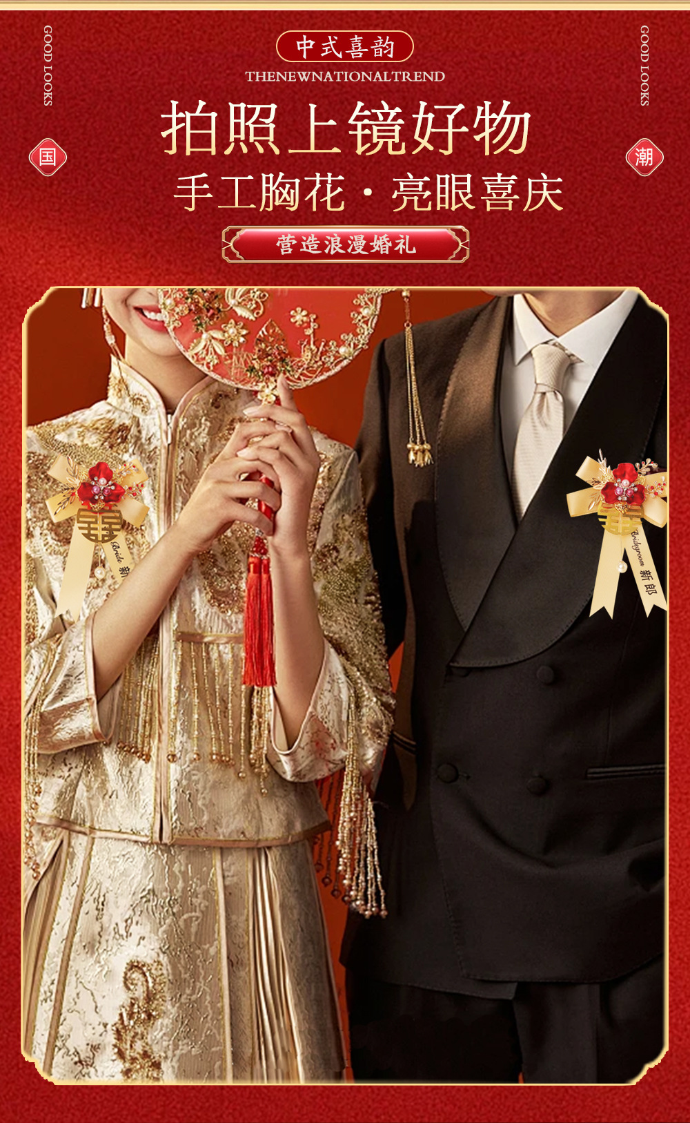 웨딩 용품 컬렉션 중국 결혼식 하이 엔드 카디건 브로치 꽃 결혼식 전체 세트 신랑 신부 Xi 단어 corsage스토어 가기