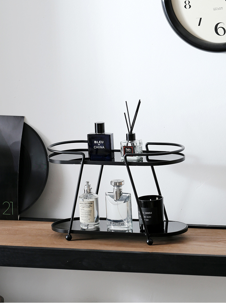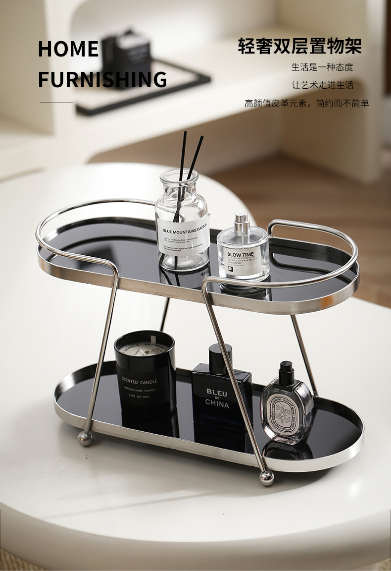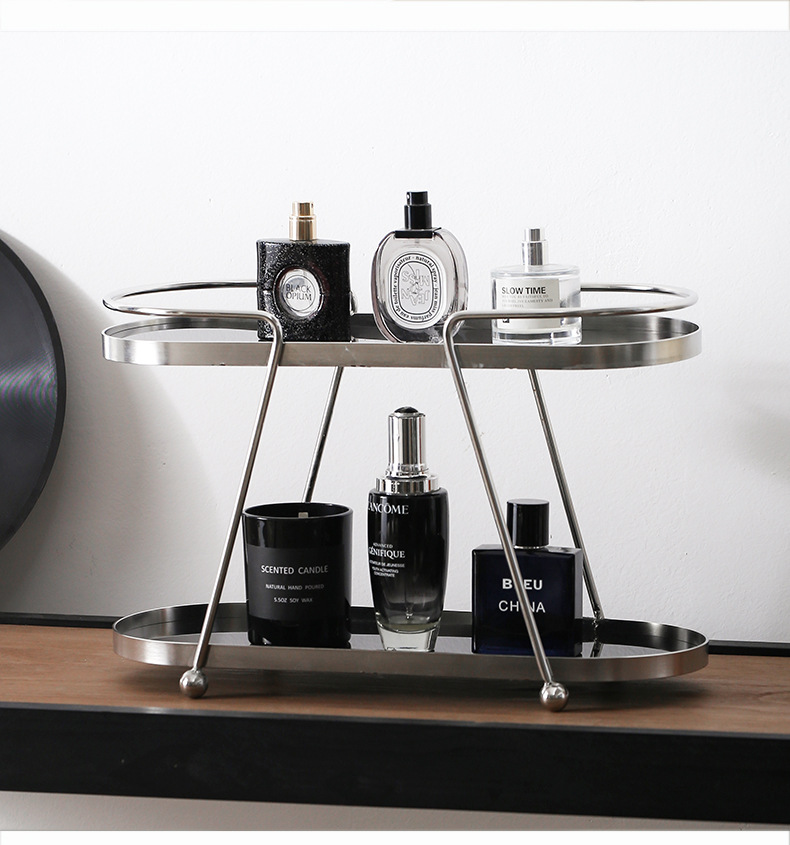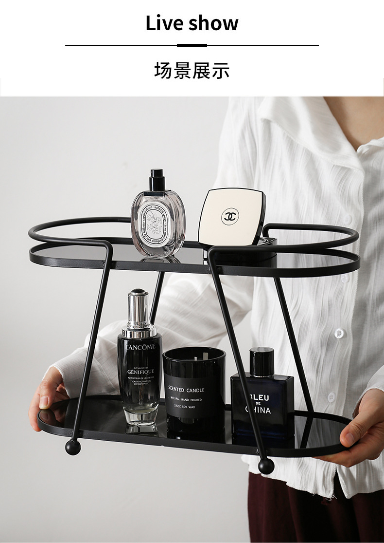 가벼운 럭셔리 더블 레이어 스토리지 랙 화장품 워터 컵 스토리지 랙 데스크탑 향수 아로마 테라피 높은 가치 스킨 케어 랙