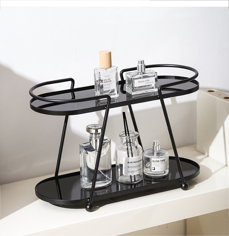 가벼운 럭셔리 더블 레이어 스토리지 랙 화장품 워터 컵 스토리지 랙 데스크탑 향수 아로마 테라피 높은 가치 스킨 케어 랙스토어 가기