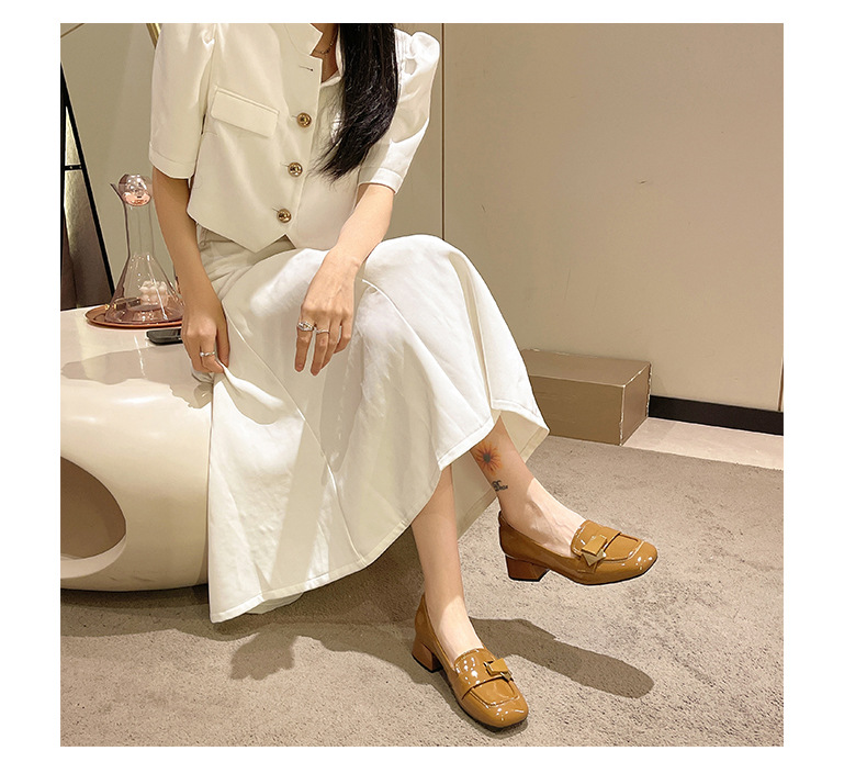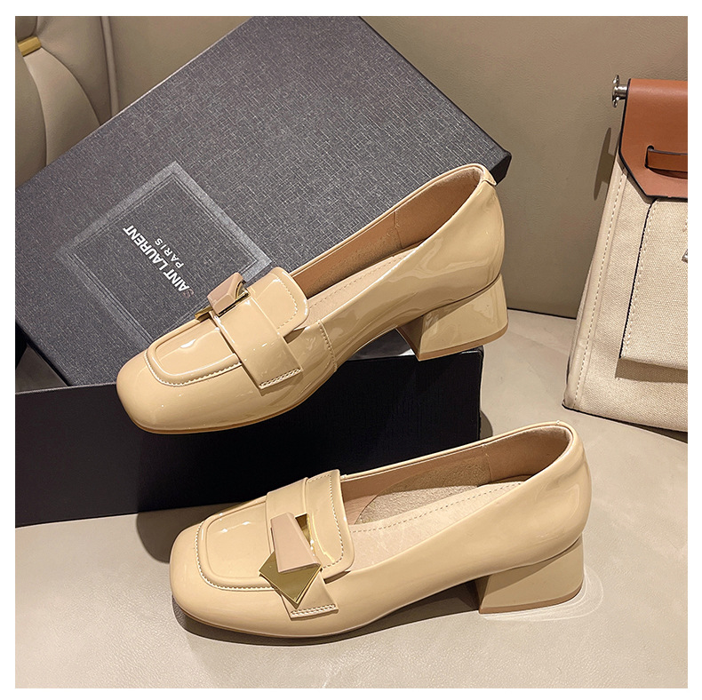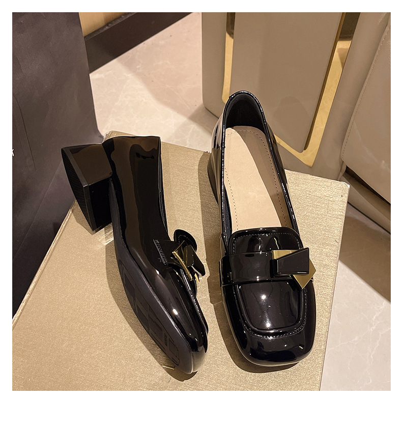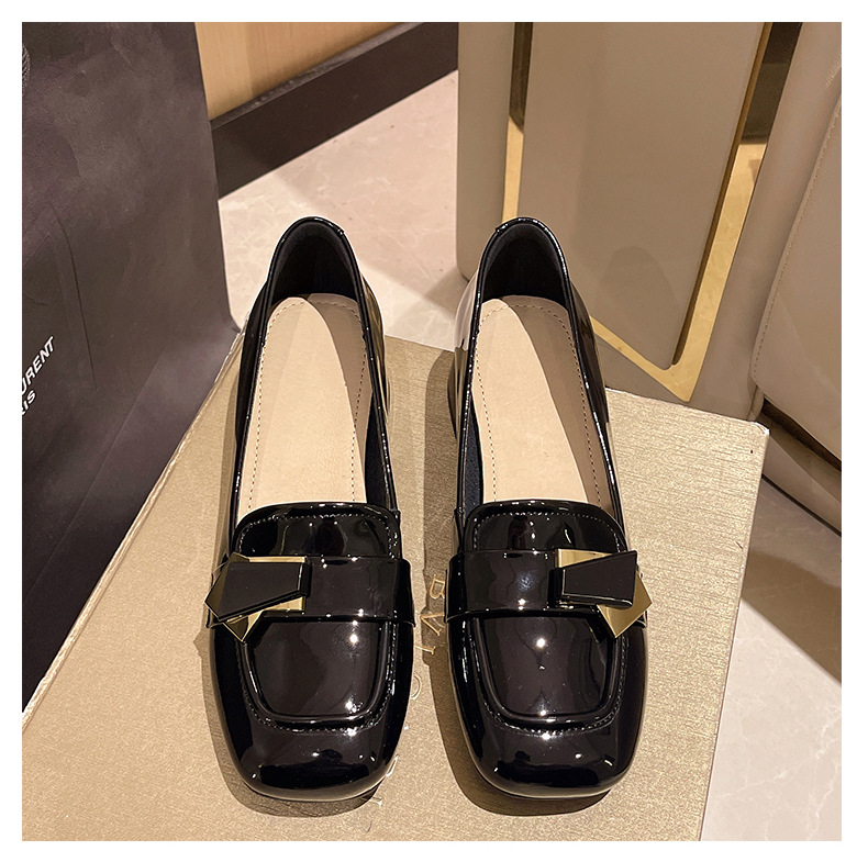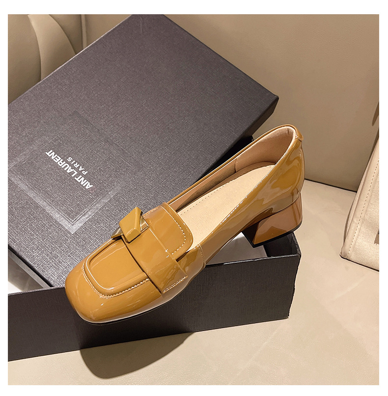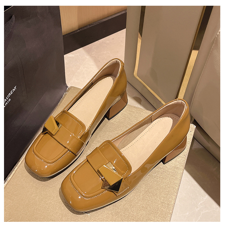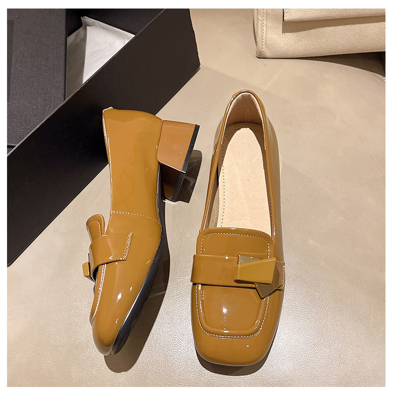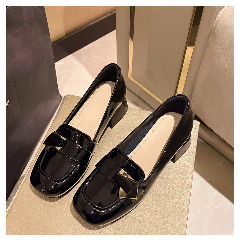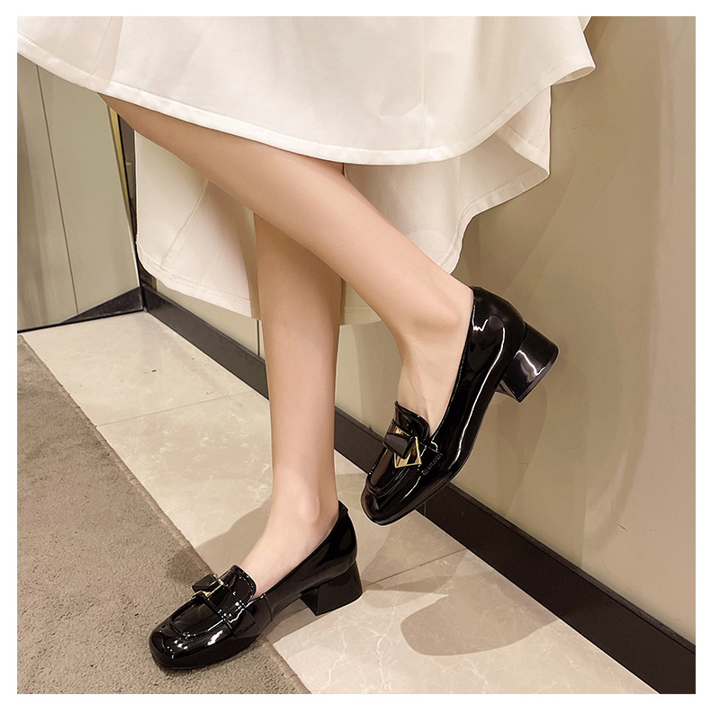 여성용 페이턴트 가죽 로퍼 2025 봄 여름 낮은 굽 사각코 굵은 굽 클래식 가죽 신발 대학 스타일 트렌드스토어 가기