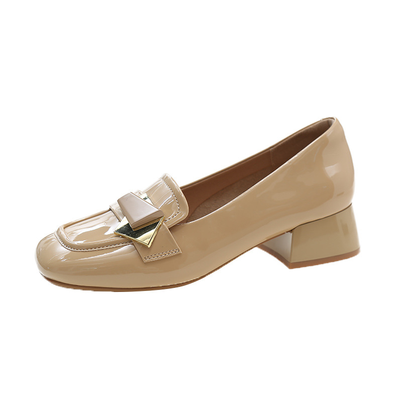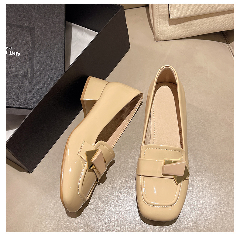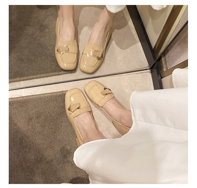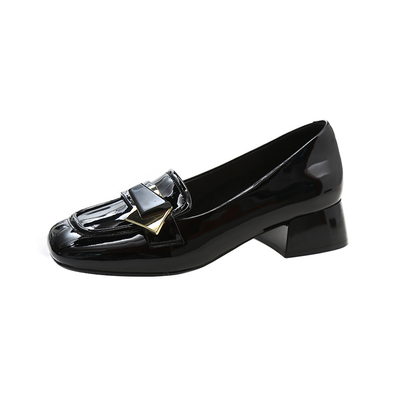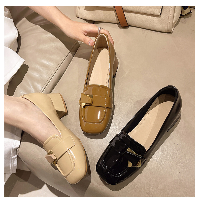여성용 페이턴트 가죽 로퍼 2025 봄 여름 낮은 굽 사각코 굵은 굽 클래식 가죽 신발 대학 스타일 트렌드