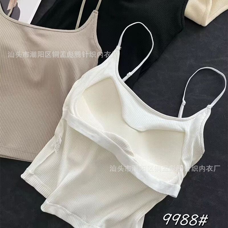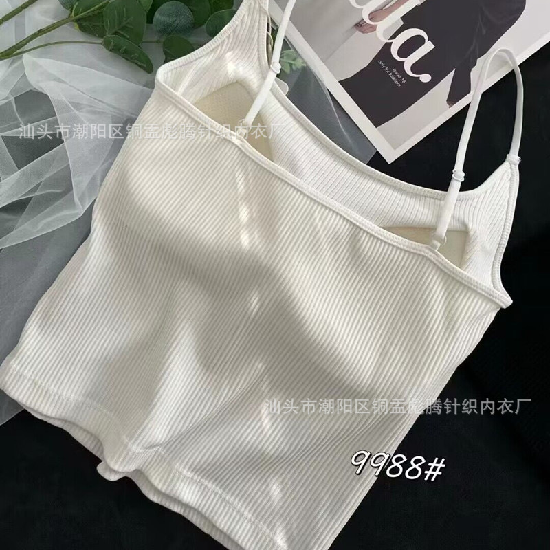 여름 뜨거운 소녀 단색 작은 캐미솔 여성 통합 고정 컵 슬리밍 스퀘어 칼라 바닥 튜브 상단 어깨 끈 조절 가능