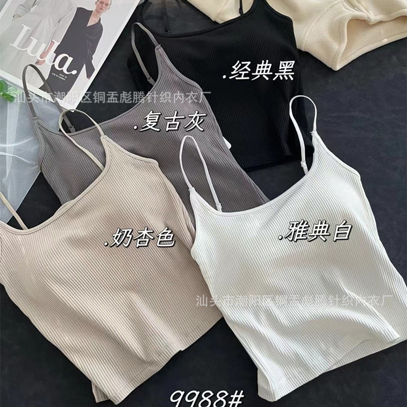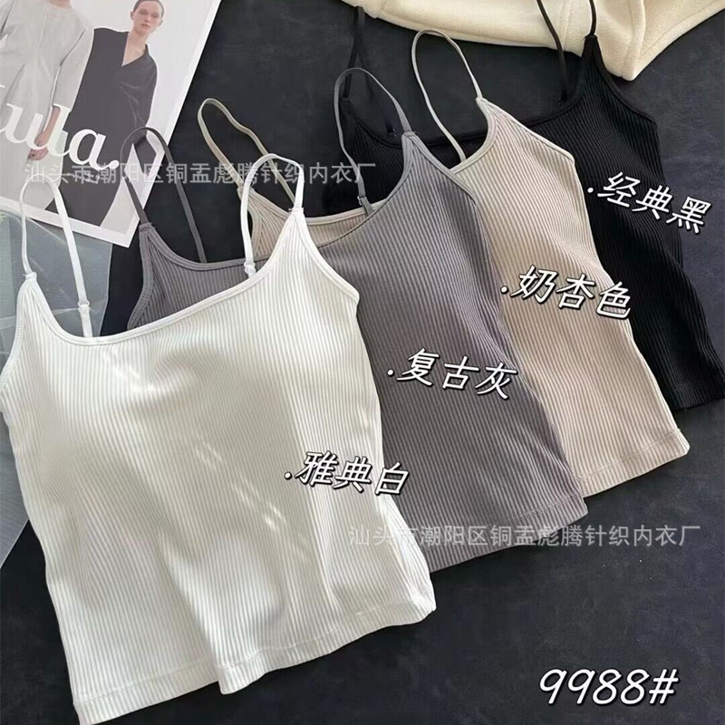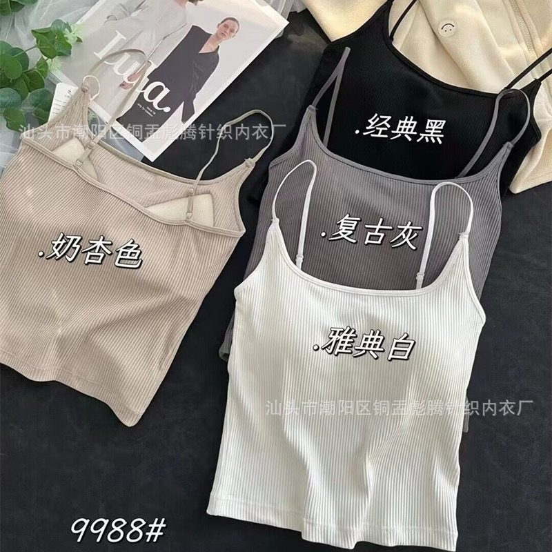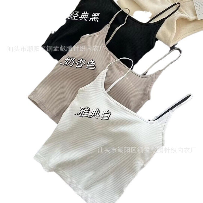 여름 뜨거운 소녀 단색 작은 캐미솔 여성 통합 고정 컵 슬리밍 스퀘어 칼라 바닥 튜브 상단 어깨 끈 조절 가능스토어 가기