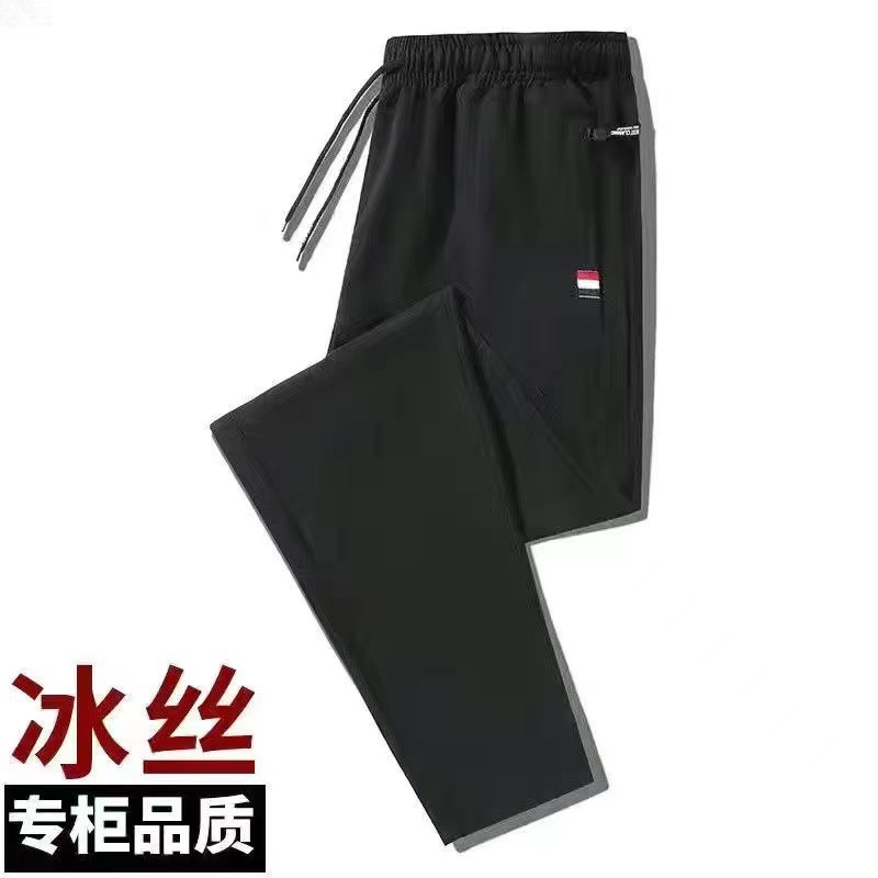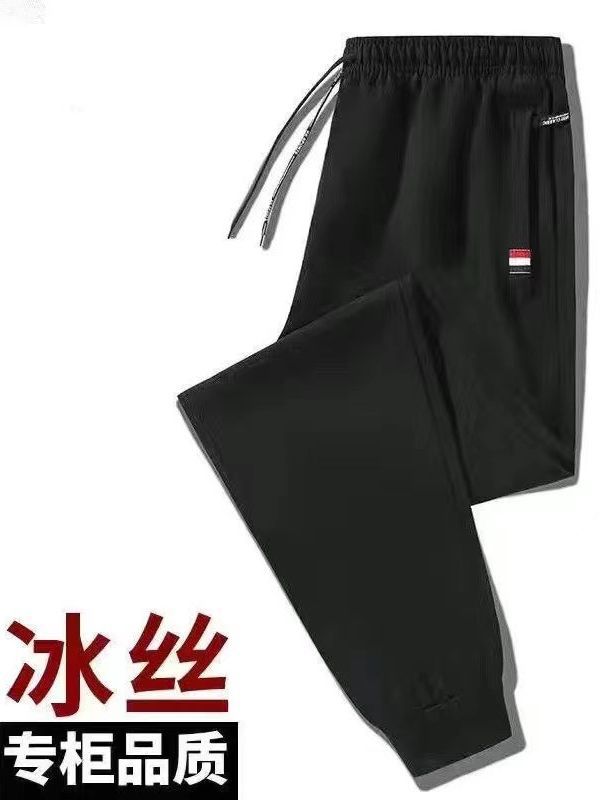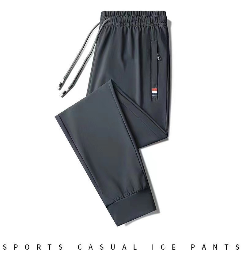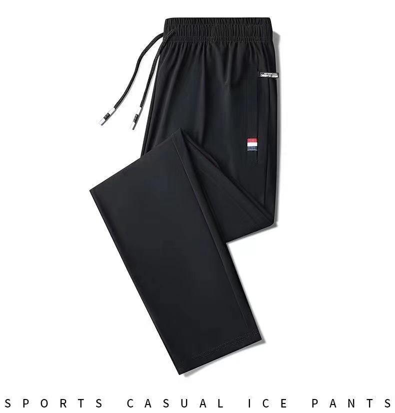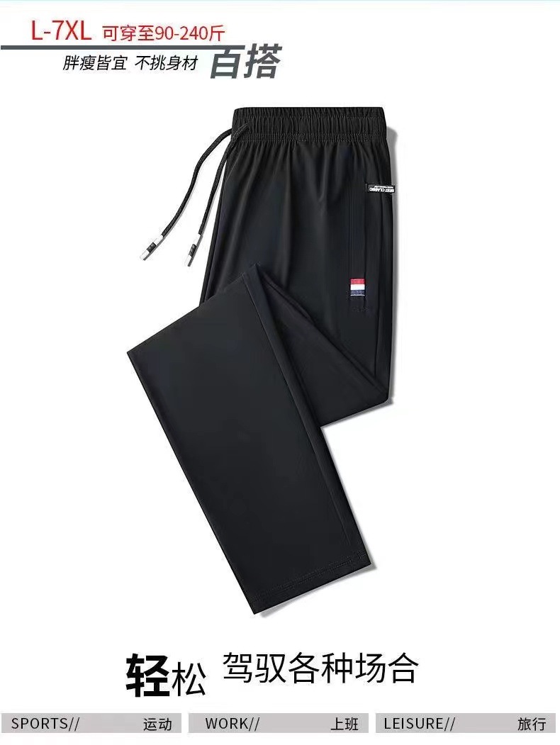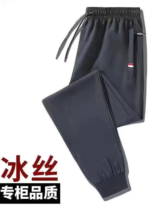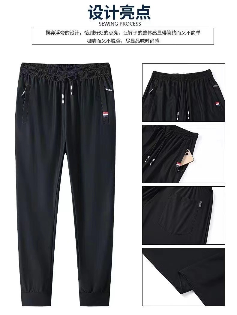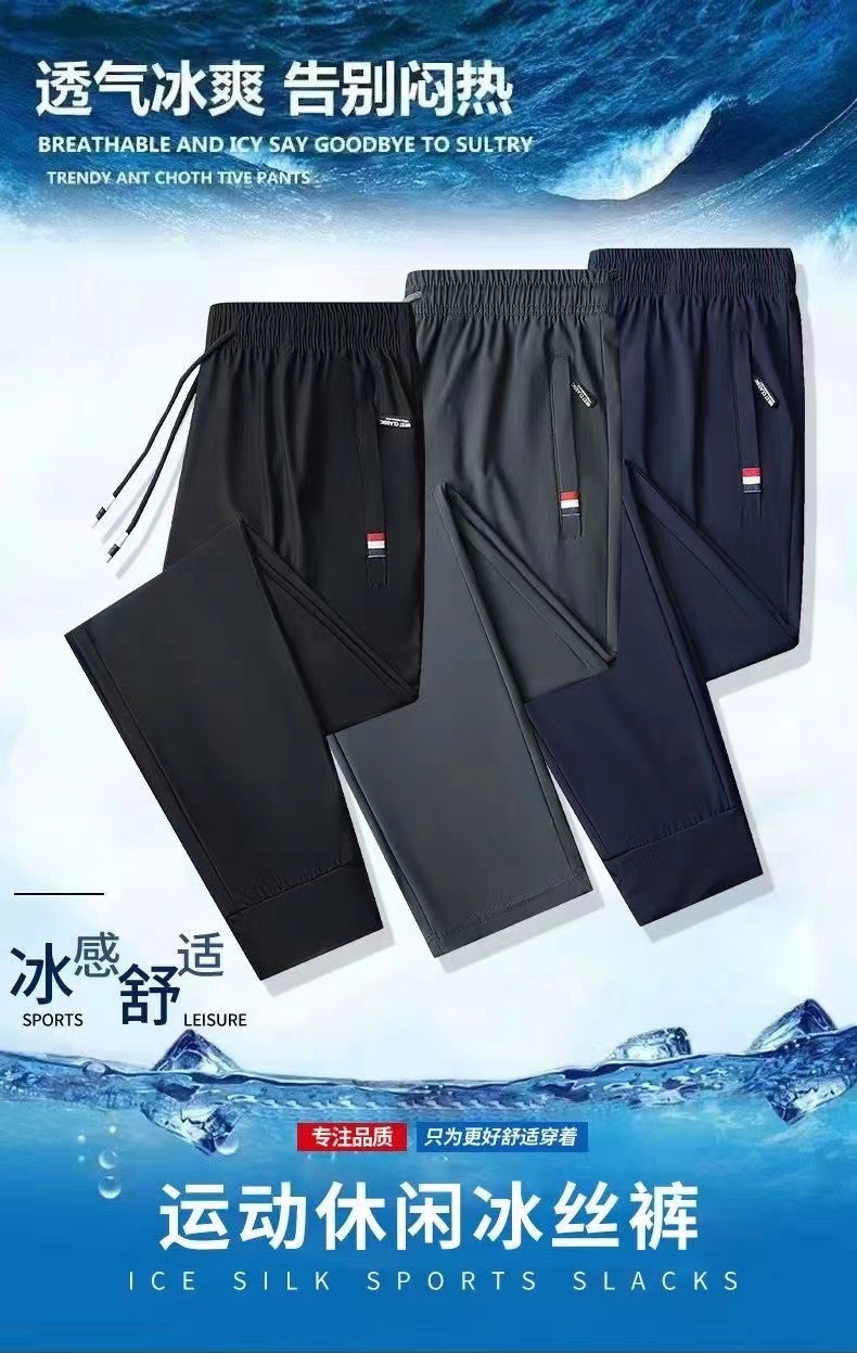 남성용 바지 여름 얇은 아이스 실크 빠른 건조 통기성 캐주얼 바지 대형 루즈 스트레치 발목 바지 스포츠 바지스토어 가기