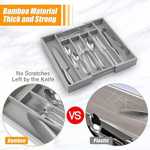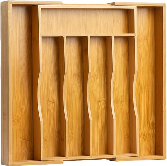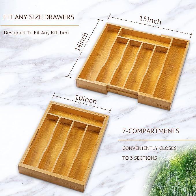 개폐식 서랍 저장 상자 대나무 파티션 보드 확장 가능한 부엌 칼 주최자 식기 문구 상자