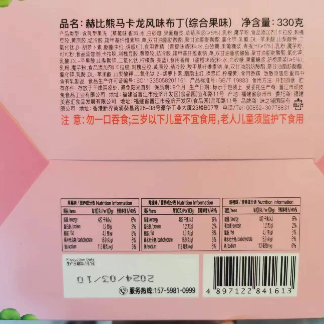 Hebi 곰 마카롱 맛 푸딩 6 개 박스 OKQ 젤리 330g 선물 상자 선물 선물 선물