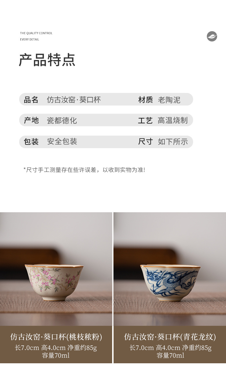 황루 가마 파란색과 흰색 용 패턴 티 컵 마스터 컵 개인 홈 오피스 오픈 티 컵 싱글 티 컵 선물 상자스토어 가기
