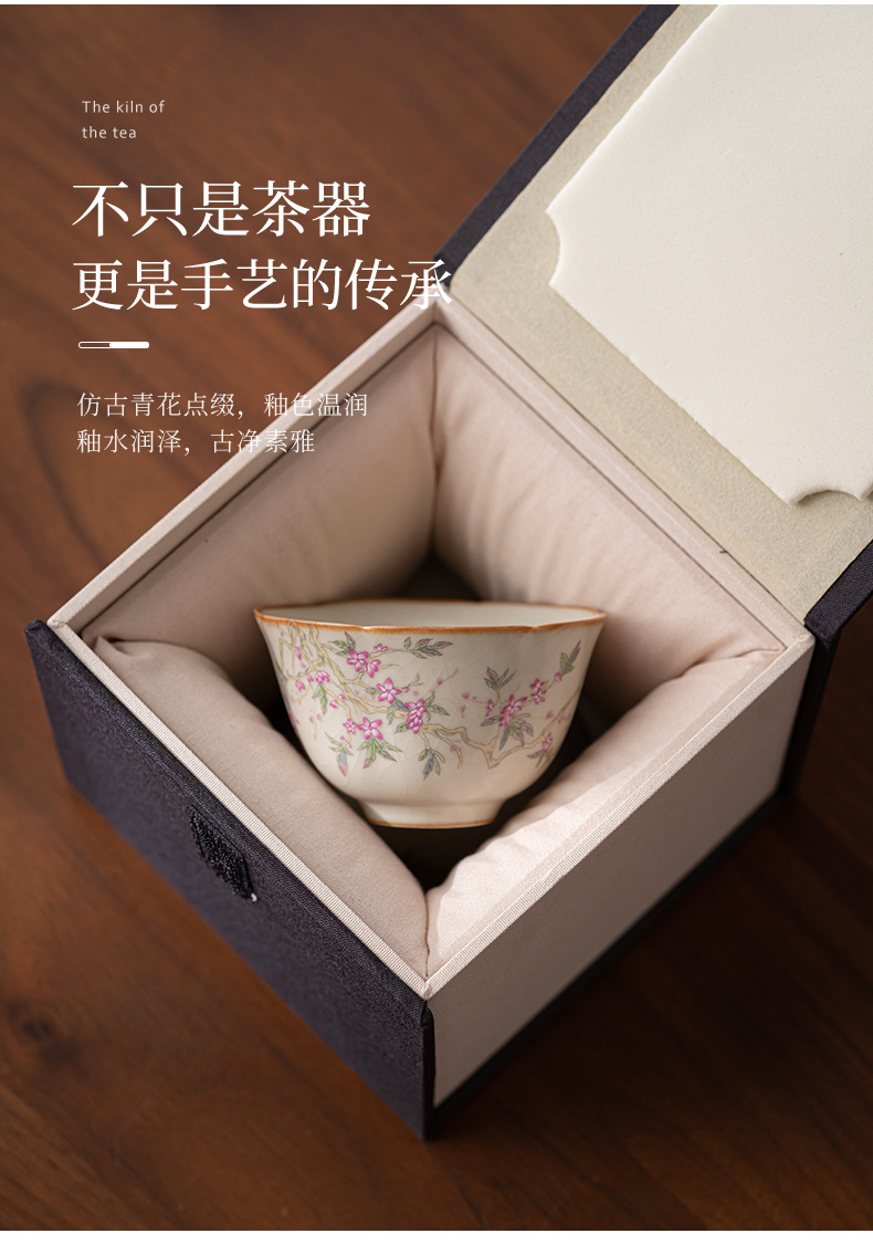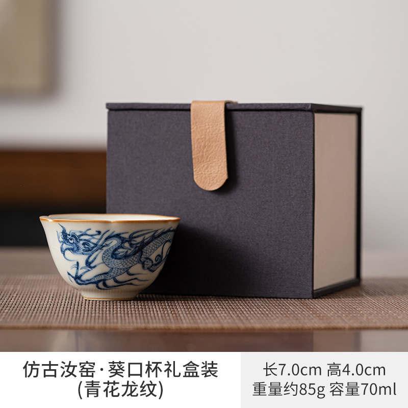 황루 가마 파란색과 흰색 용 패턴 티 컵 마스터 컵 개인 홈 오피스 오픈 티 컵 싱글 티 컵 선물 상자