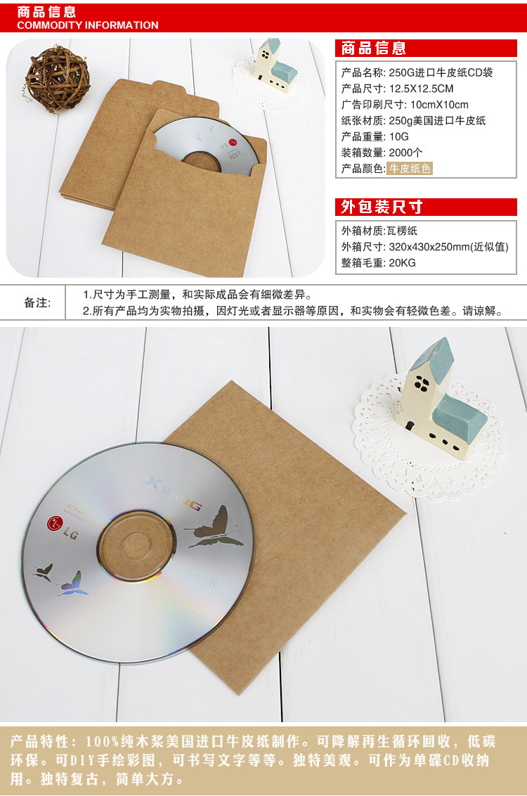 CD 종이 가방 두꺼운 크래프트 종이 하드 쉘 cd 보호 커버 dvd 커버 CD 보관 허리 씰 종이 쉘 외부 상자